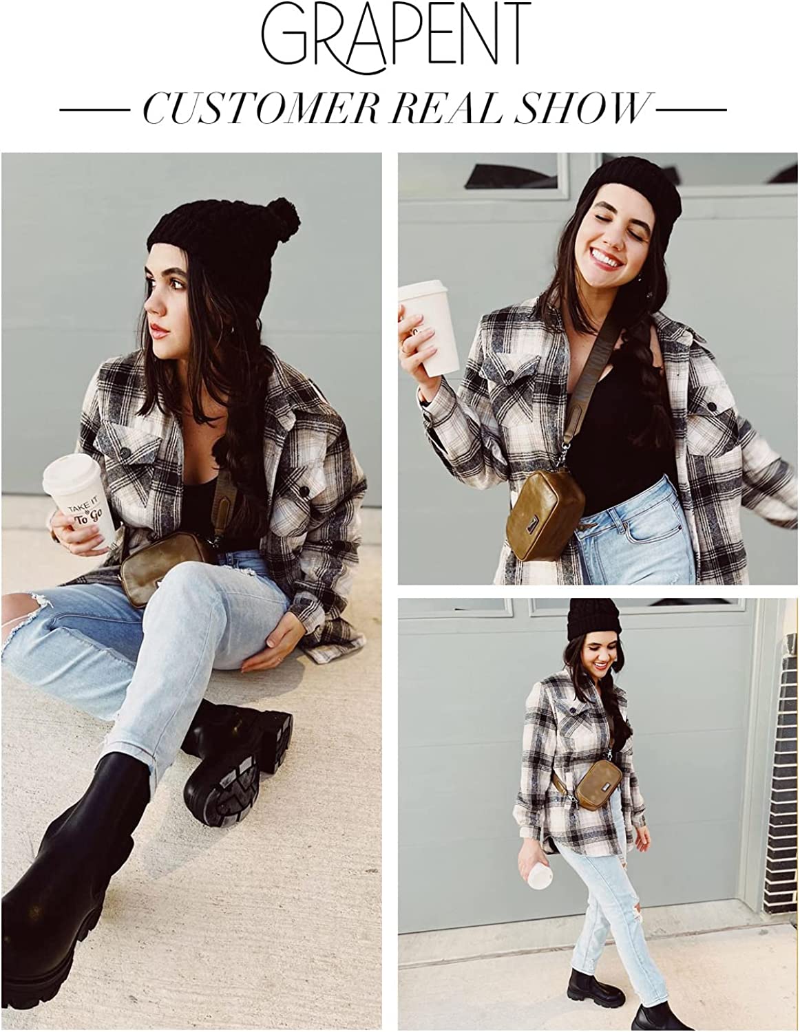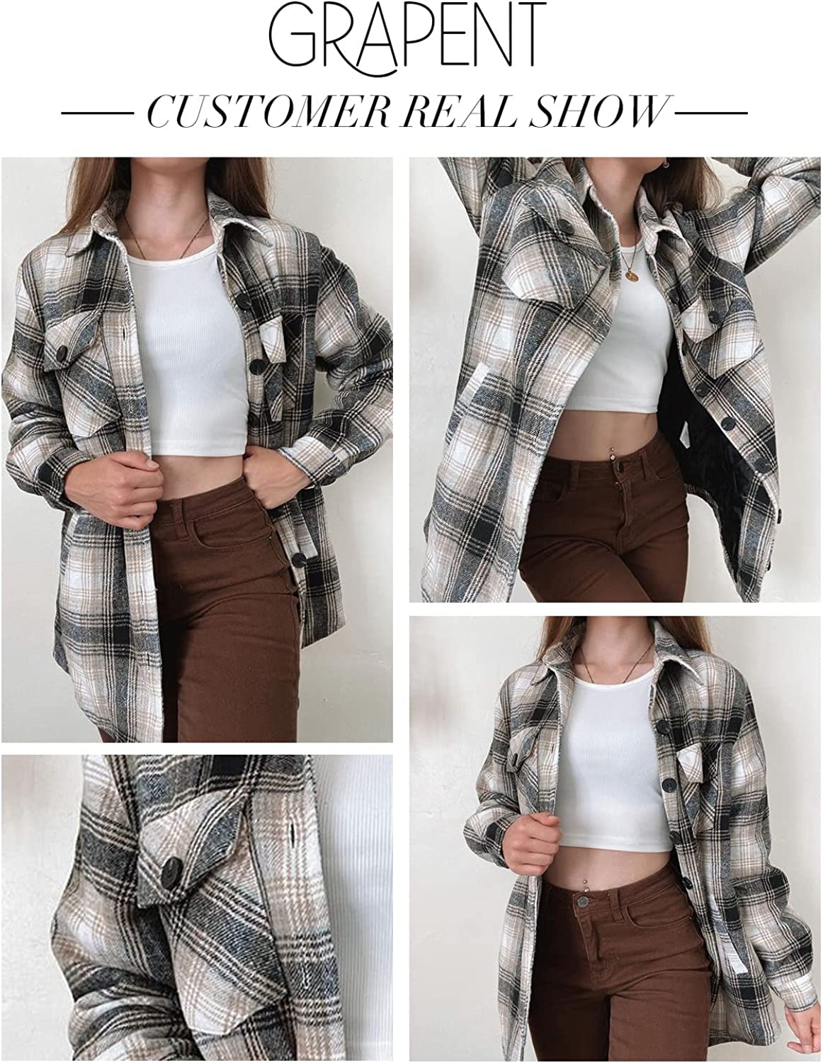 GRAPENT Women's Oversized Plaid Button Down Shirt Quilted Lined Shacket Jacket