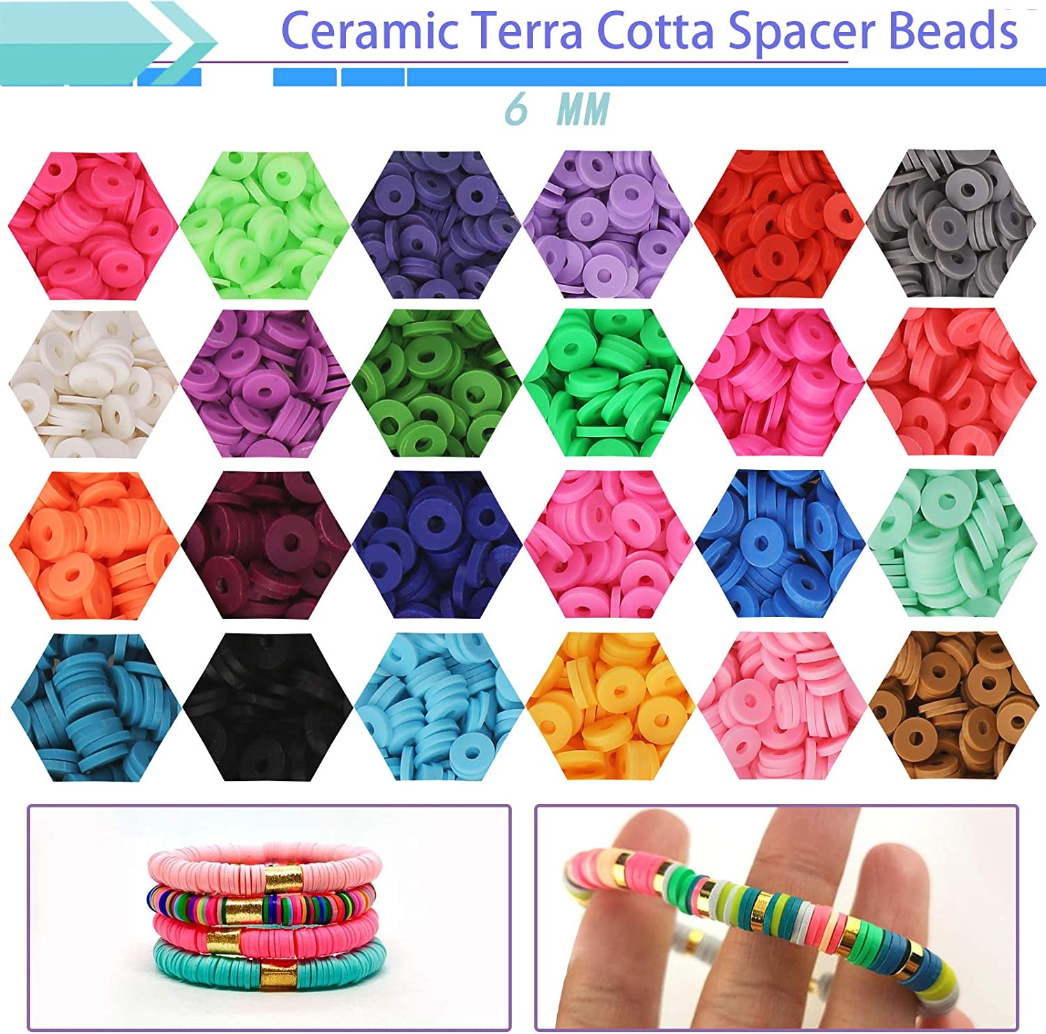 Greentime Clay Beads, 4500pcs Flat Round Spacer Clay Beads Heishi Beads for Bracelets Jewelry Making Kit Earring DIY Crafts for Holiday Gift (24Color 6mm)