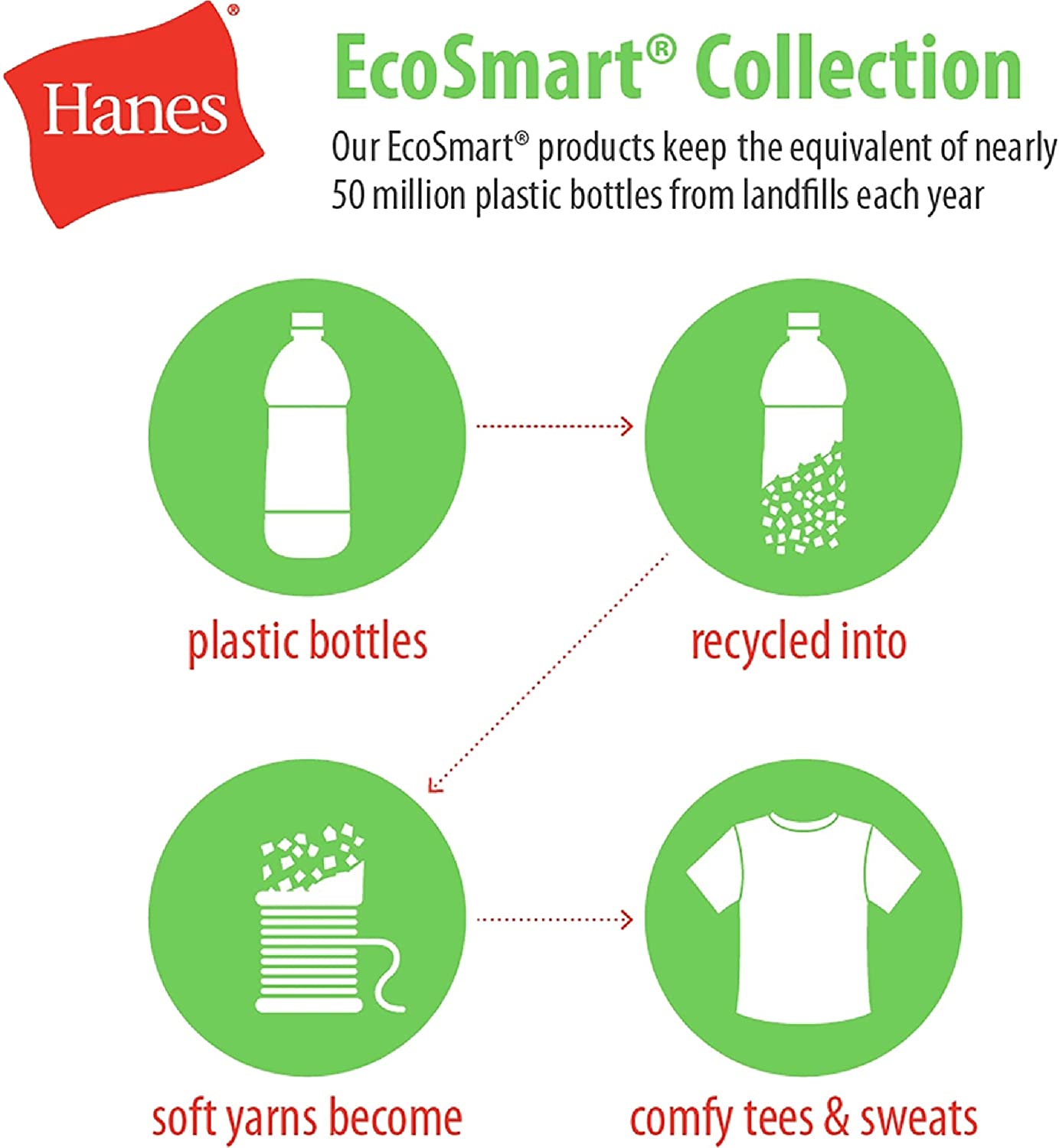 The Hanes Comfort Blend Eco-Smart full-zip hooded jacket provides medium weight fleece comfort all year around. Feel better in this sweatshirt because Hanes keeps plastic bottles of landfills by using recycled polyester.