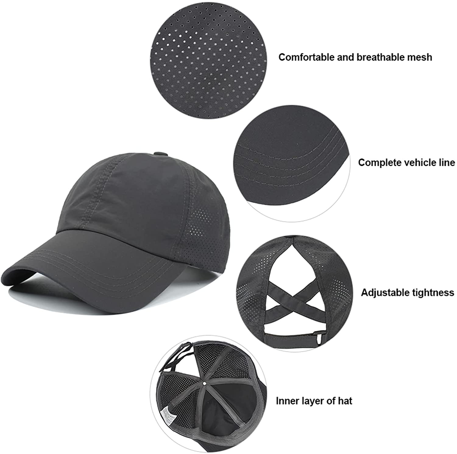 HGGE Womens Criss Cross Ponytail Baseball Cap Adjustable High Messy Bun Ponycap Quick Drying Hat