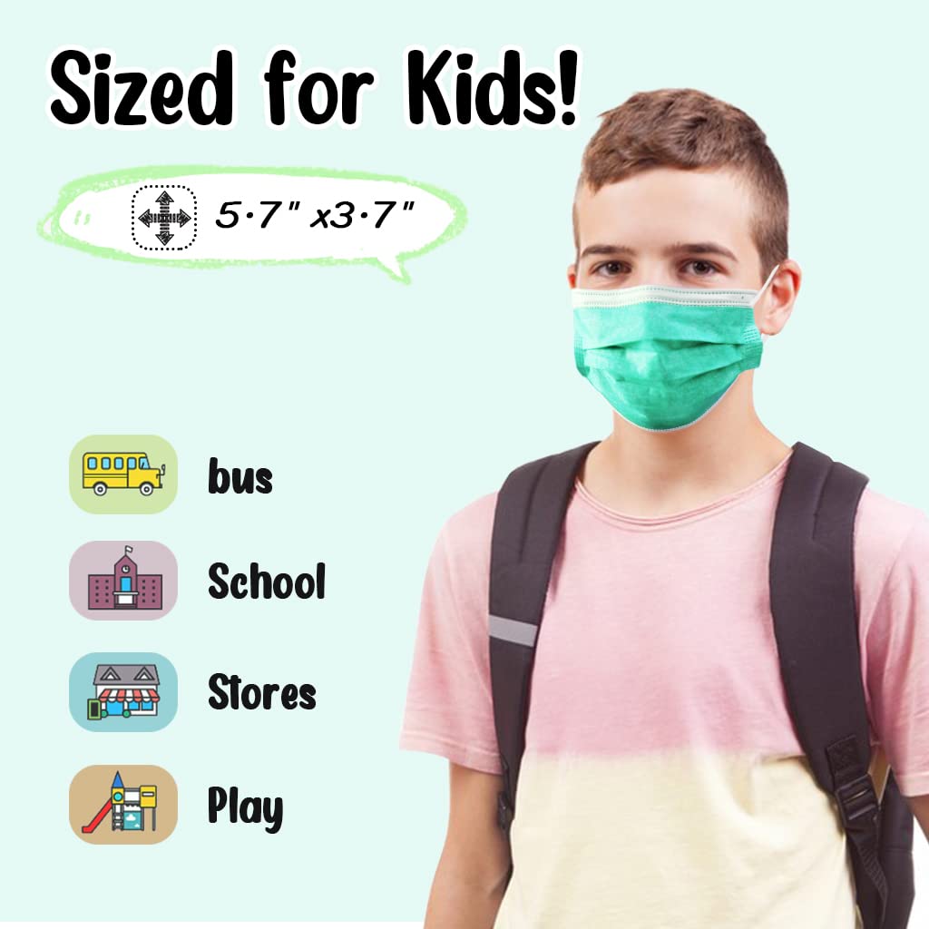 HIWUP 100Pcs Ten Colors Kids Disposable Face Masks for Childrens Face Mask Ages 4-12