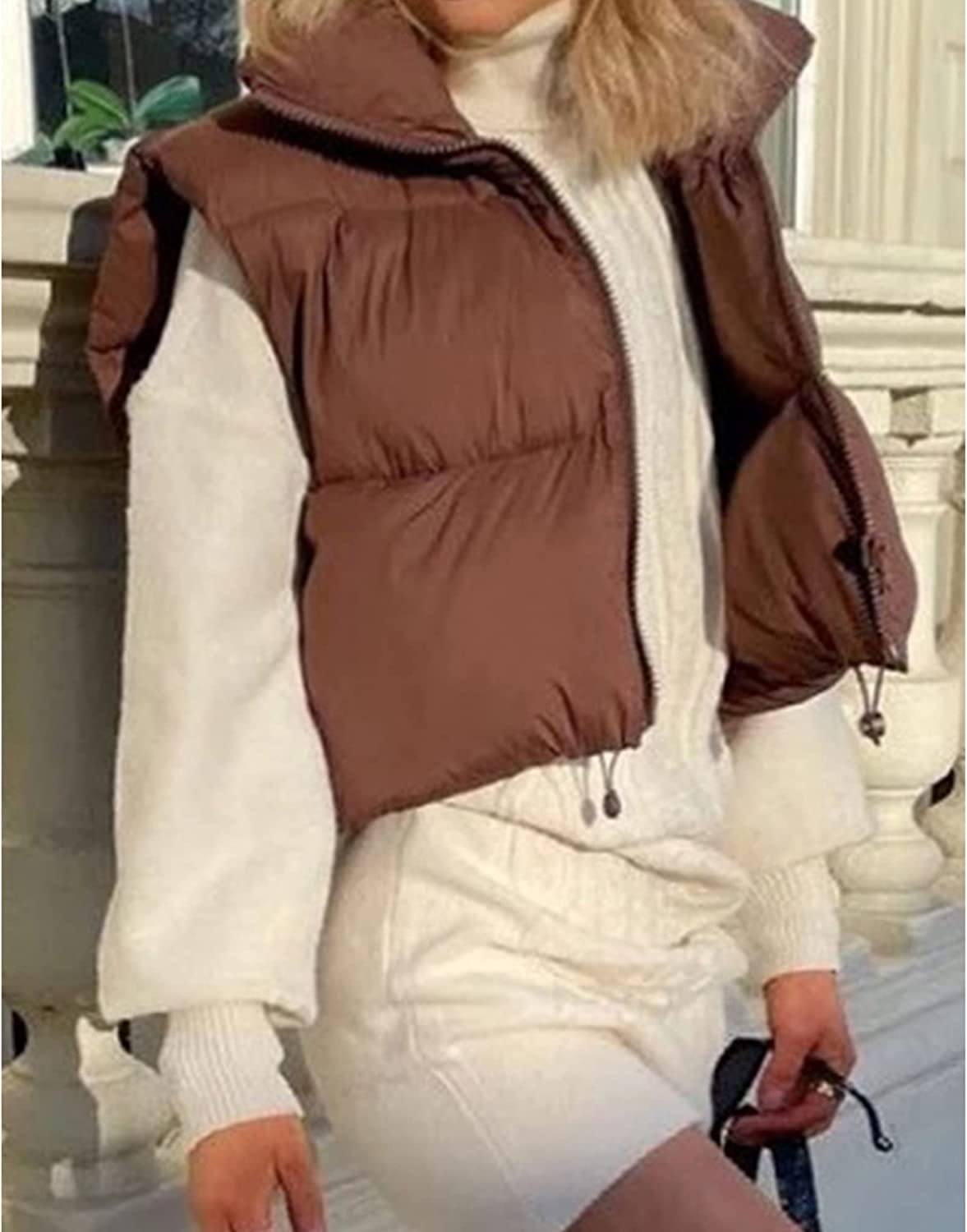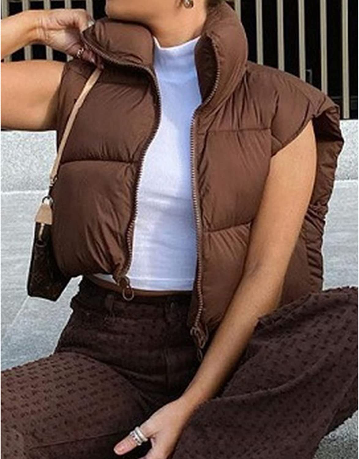 Hixiaohe Women's Winter Crop Vest Puffer Lightweight Stand Collar Padded Vest Zip Up Sleeveless Jacket