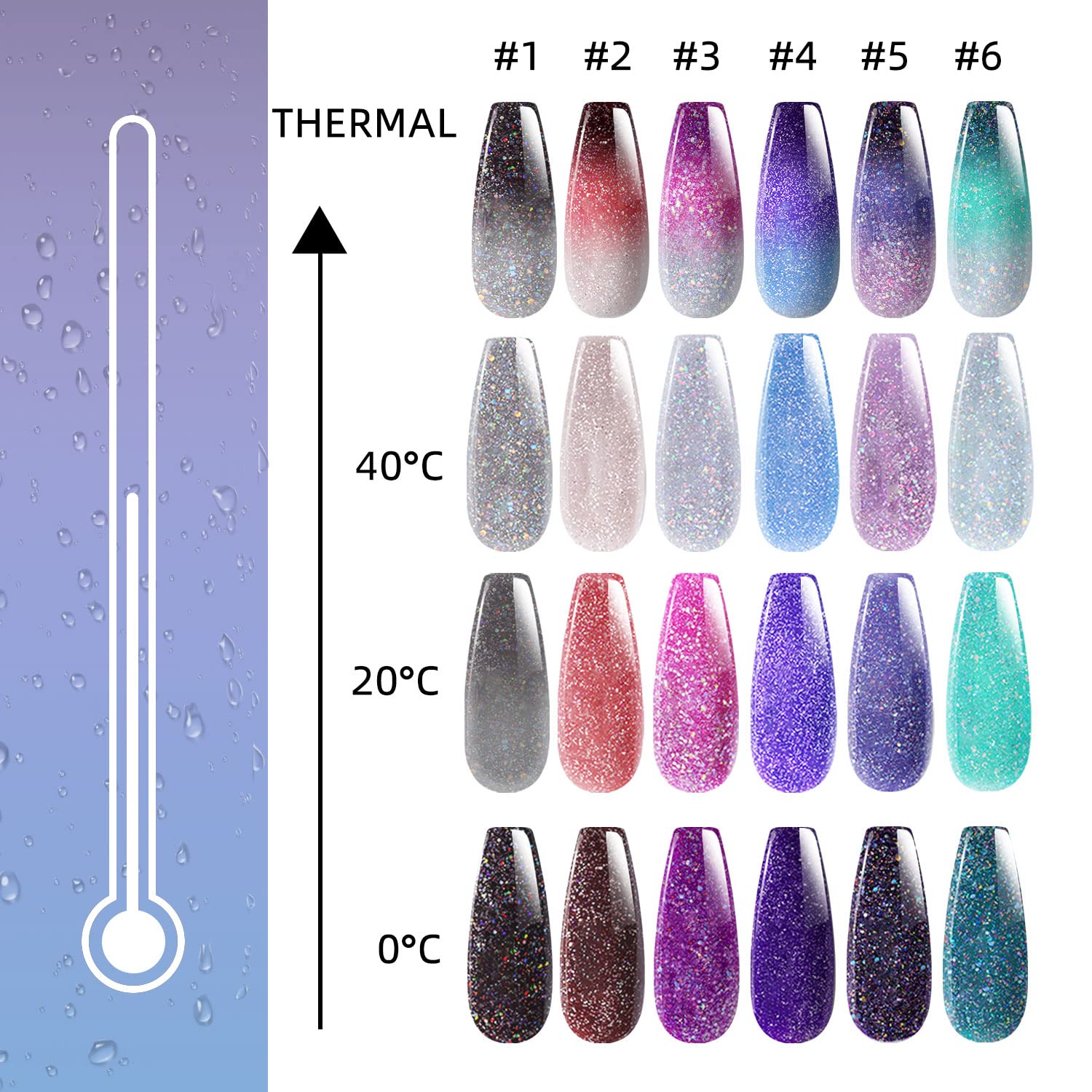 HOMOST Color Changing Reflective Glitter Diamond Gel Nail Polish Set, 6 Colors Glitter Gel Polish Reflective Pink Purple Blue Nail Polish Kit