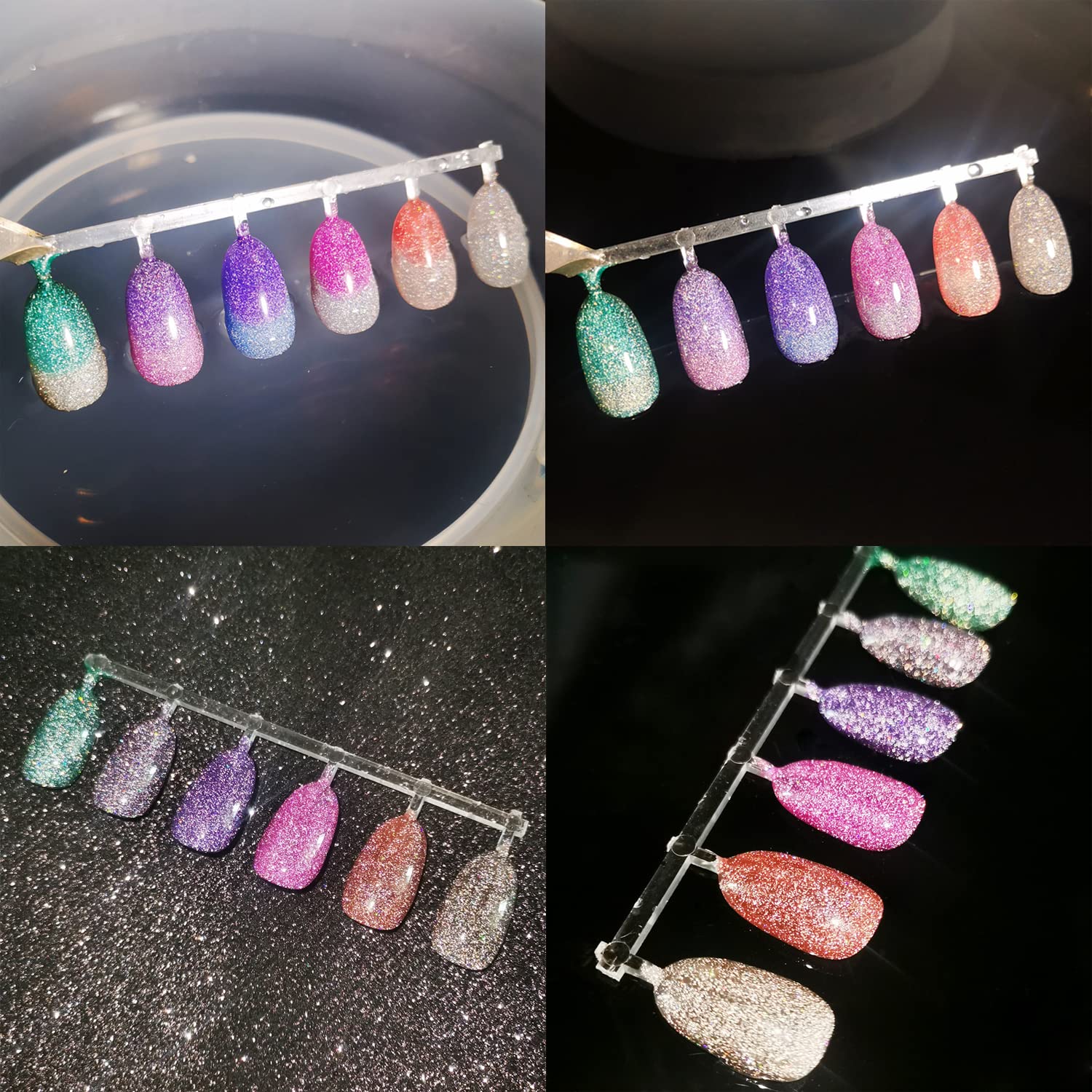 HOMOST Color Changing Reflective Glitter Diamond Gel Nail Polish Set, 6 Colors Glitter Gel Polish Reflective Pink Purple Blue Nail Polish Kit