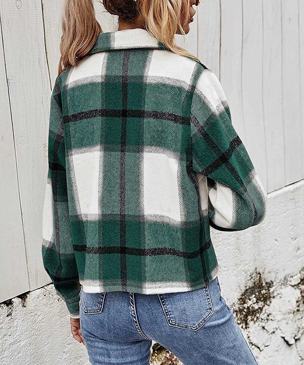 Hongqizo Women Long Sleeve Button Front Plaid Jackets Flannel Wool Blend Casual Plaid Shirts Coat Shackets