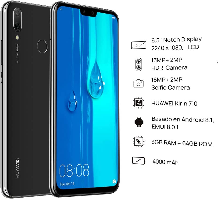 Huawei Y9 2019 JKM-LX3 6.5" HiSilicon Kirin 710 64GB 3GB RAM Dual SIM A-GPS Fingerprint -Glonass No Warranty US (Black)