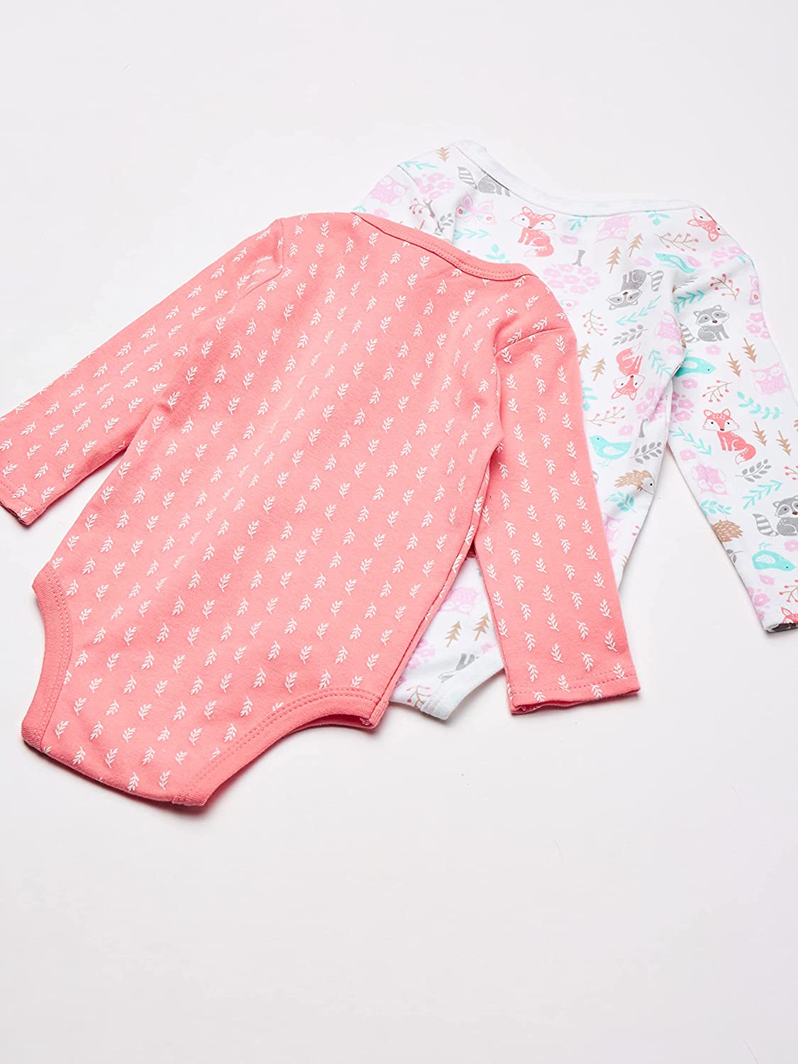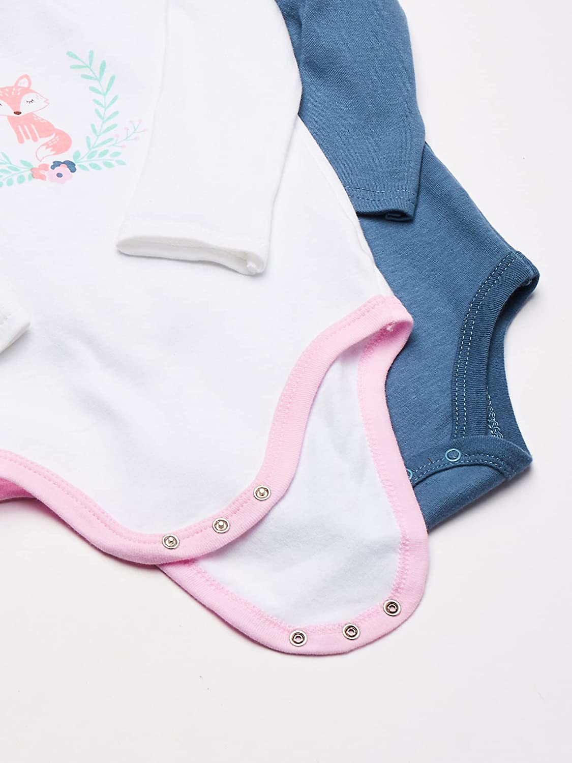 Hudson Baby premium layette collection of high quality cute baby clothing features 100% premium cotton for the softest touch on your baby's gentle skin. This long sleeve 3pk bodysuits are essential to any baby's wardrobe - and these bodysuits are so comfortable that they can be used as underwear or even on their own. The one-piece design with snaps makes for no fuss dressing - and snap closure at the bottom makes diaper changing easier. The seasonal design helps to keep baby comfortable and warm in cooler temperatures.