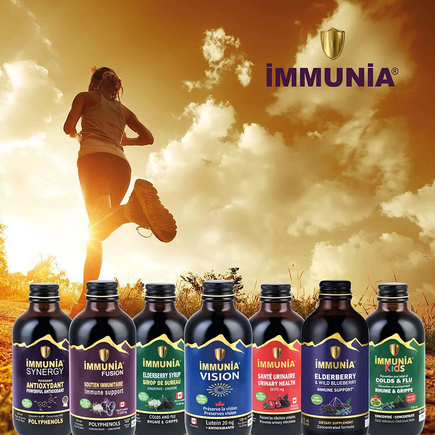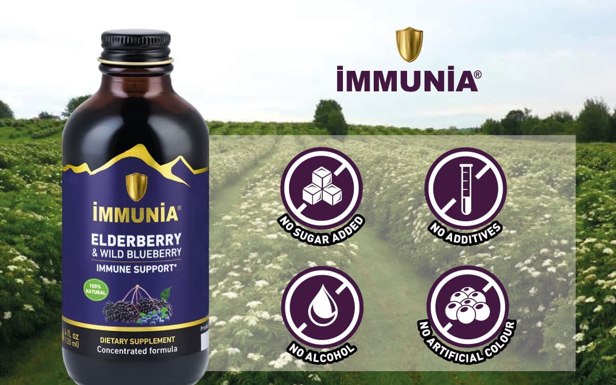 Immunia Elderberry & Wild Blueberry Concentrated. Immune Support. Delicious Taste. No Sugar Added. 24 Days/Bottle.
