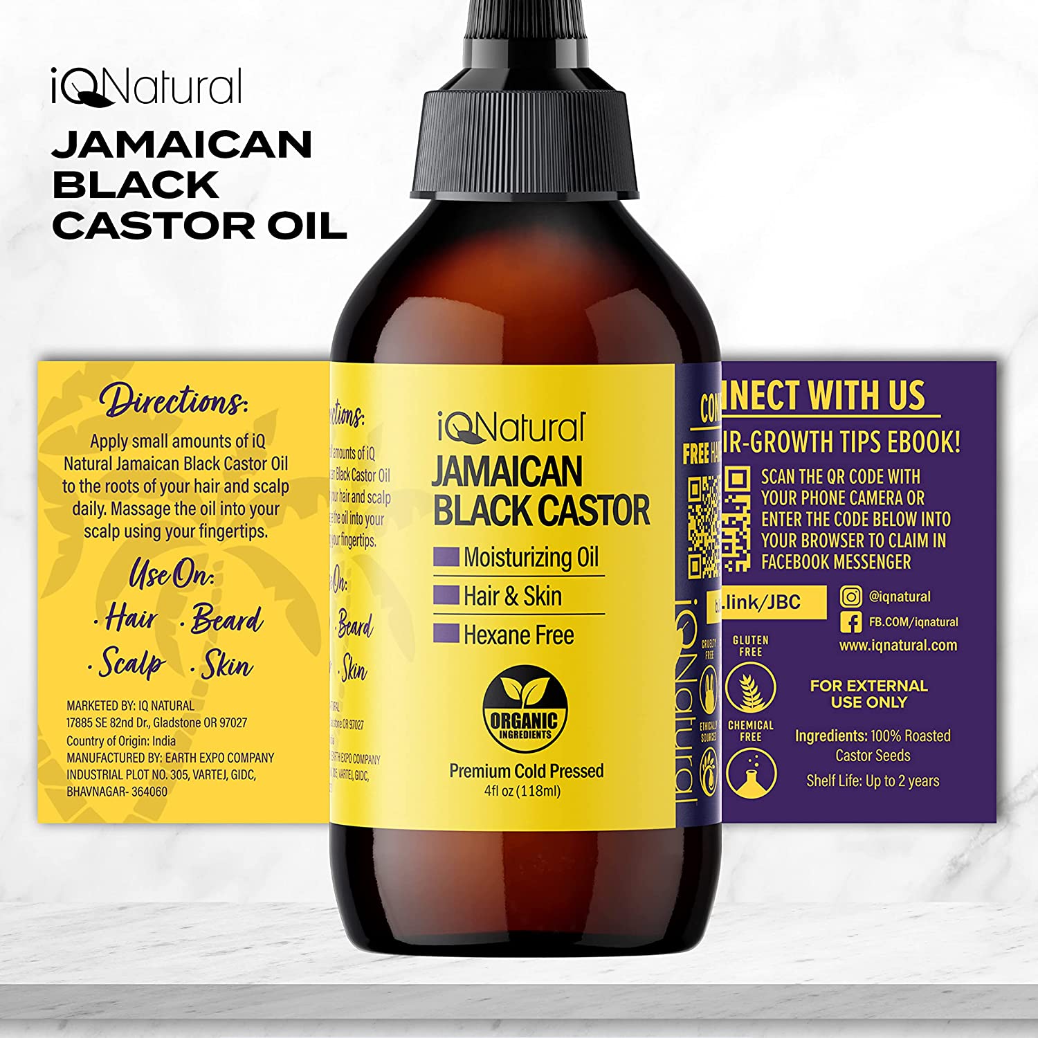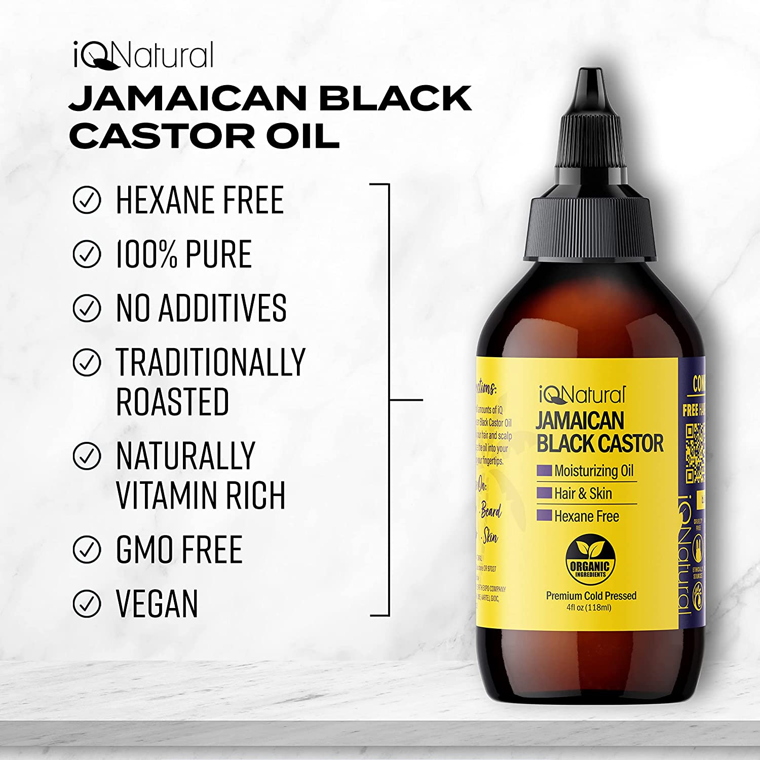 IQ Natural Jamaican Black Castor Oil for Hair Growth and Skin Conditioning, 100% Pure Cold Pressed, Scalp, Nail and Hair Oil - (Unscented) (4oz)