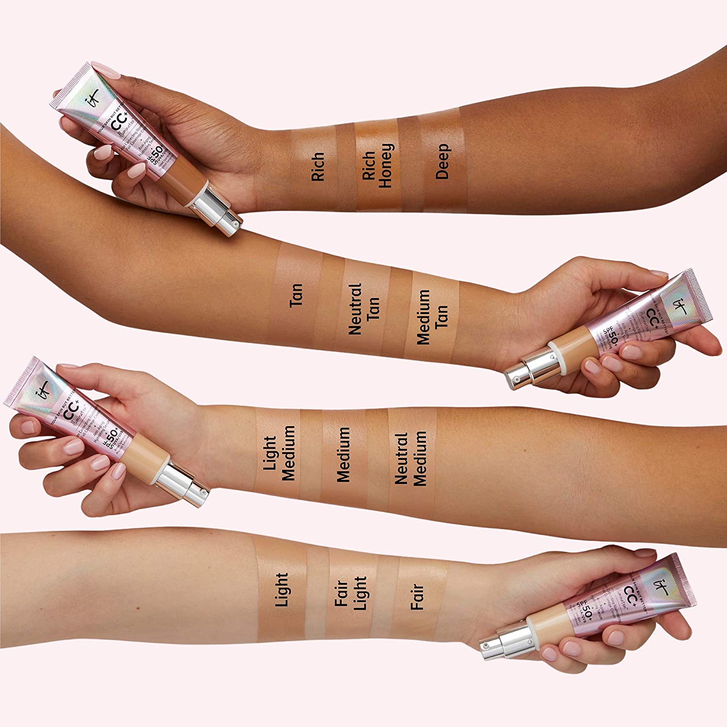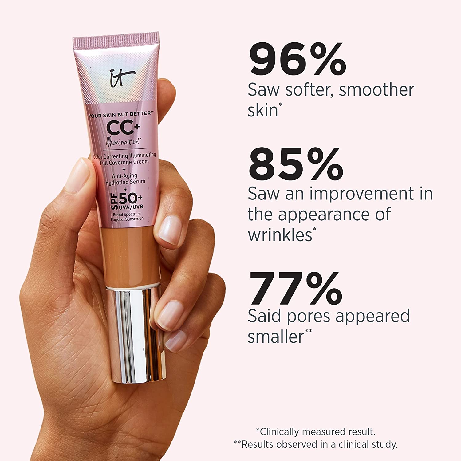 IT Cosmetics Your Skin But Better CC+ Cream Illumination, Medium (W) - Color Correcting Cream, Full-Coverage Foundation, Hydrating Serum & SPF 50+ Sunscreen - Radiant Finish - 1.08 fl oz
