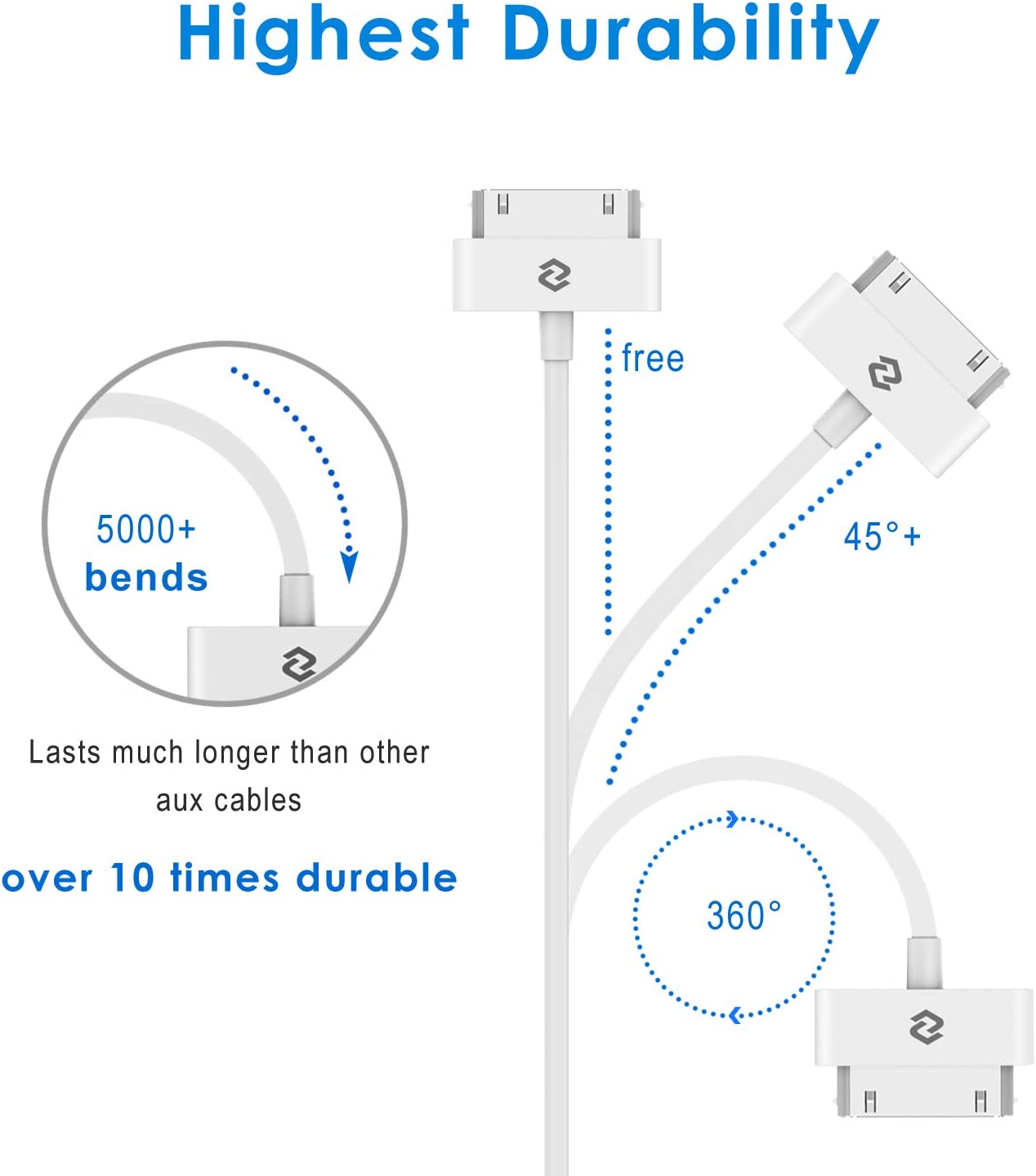 JETech USB Sync and Charging Cable Compatible iPhone 4/4s, iPhone 3G/3GS, iPad 1/2/3, iPod, 3.3 Feet (White)