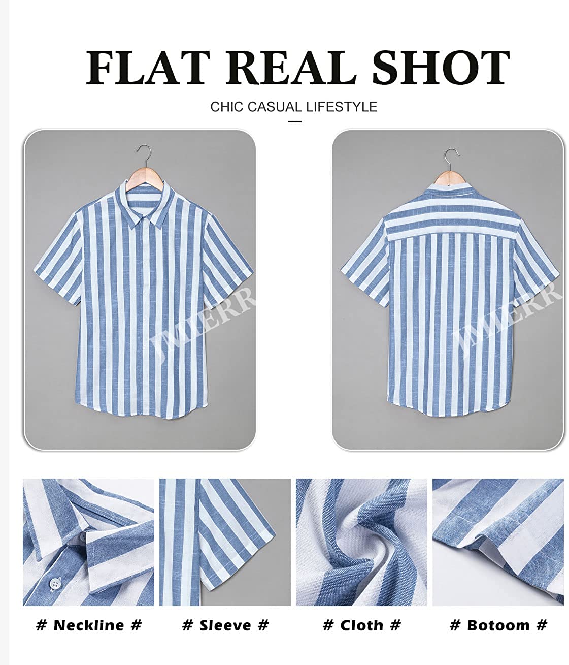 JMIERR Men's Casual Short Sleeve Button-Up Striped Dress Shirts Cotton Shirt