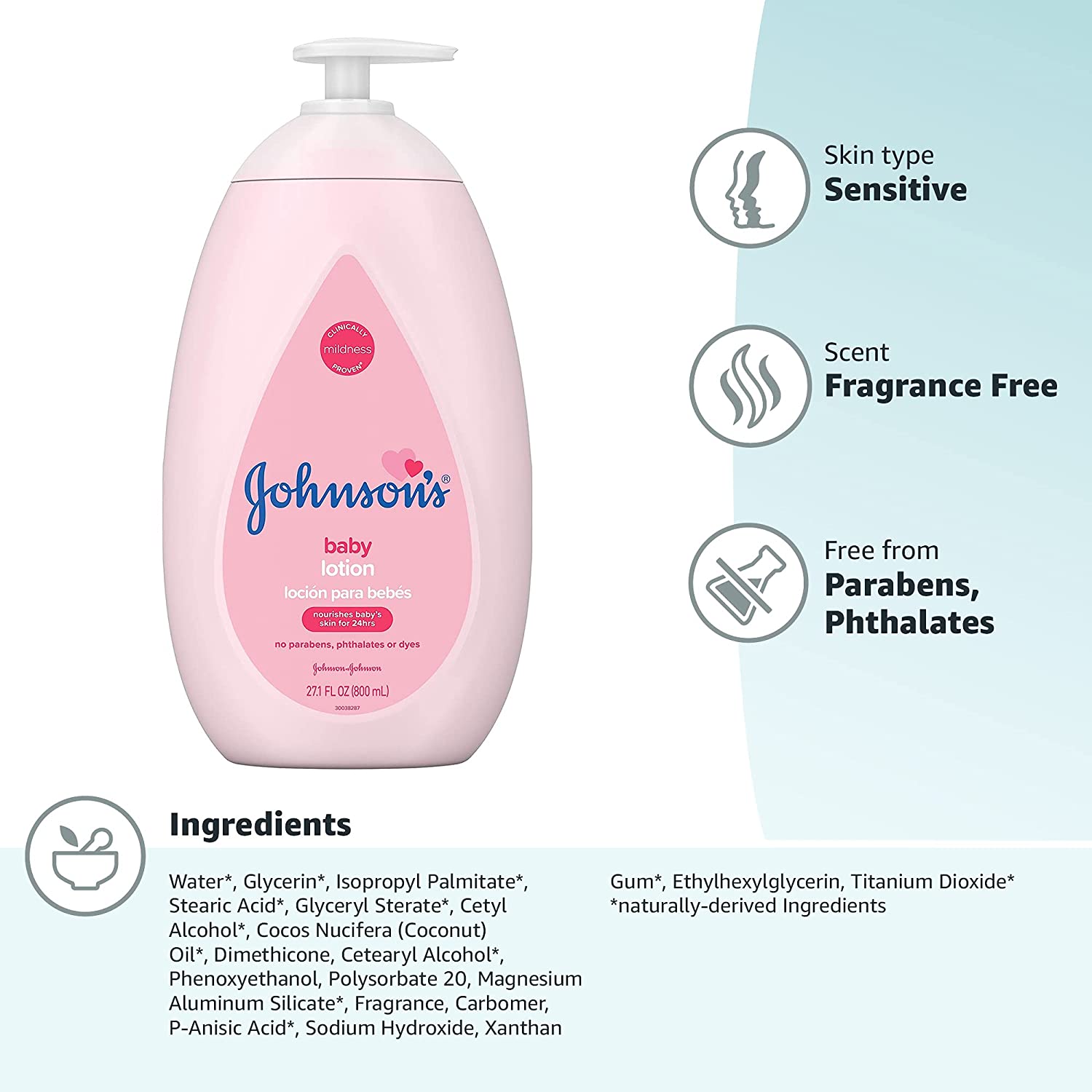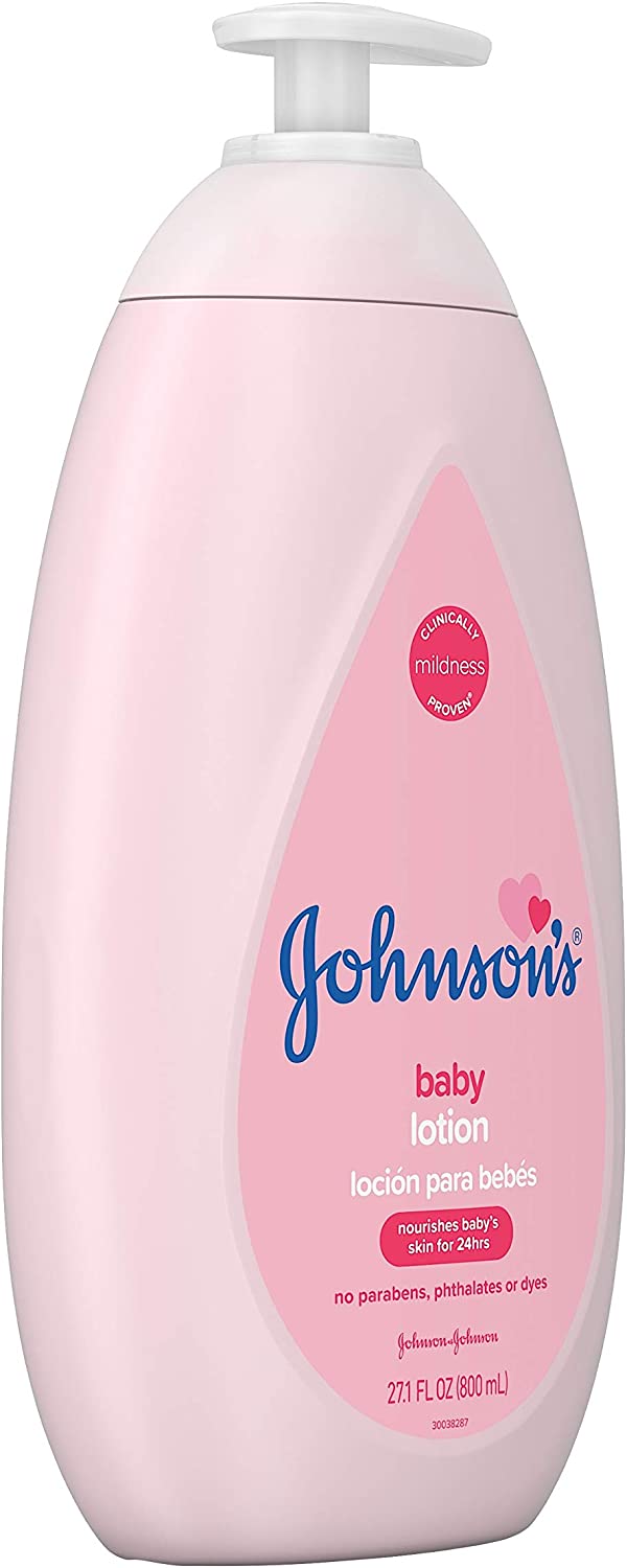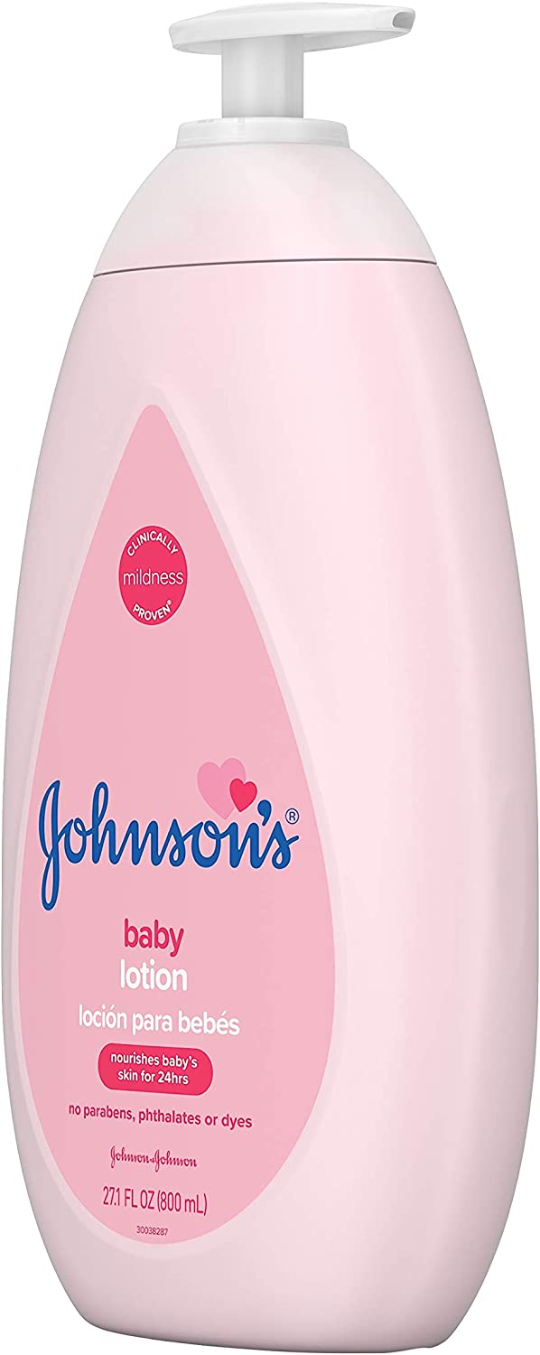 Nourish your little one's skin with Johnson's Baby Body Lotion. Gentle enough for babies and suitable for the whole family, this moisturizing pink baby lotion with coconut oil hydrates dry skin for a full 24 hours to keep delicate skin baby soft. Dermatologist- and pediatrician-tested, the improved formula of this pink baby body lotion is designed with input from parents like you. Clinically proven mild, it is hypoallergenic, free of parabens, phthalates, dyes, and harsh fragrances and is 100% gentle. Johnson's Baby Lotion can be used as part of a regular skin care routine by massaging into skin after a bath or any time baby has dry skin.