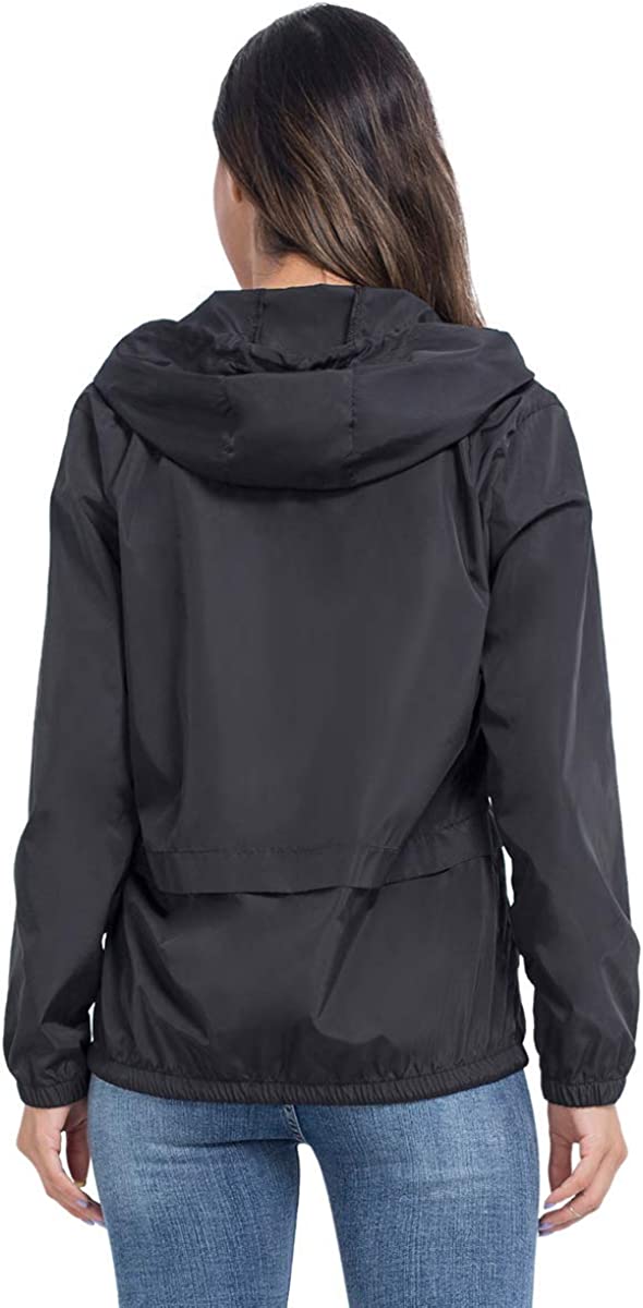 JTANIB Women's Raincoat Waterproof Windbreaker Lightweight Hooded Outdoor Packable Fashionable Color Block Jacket