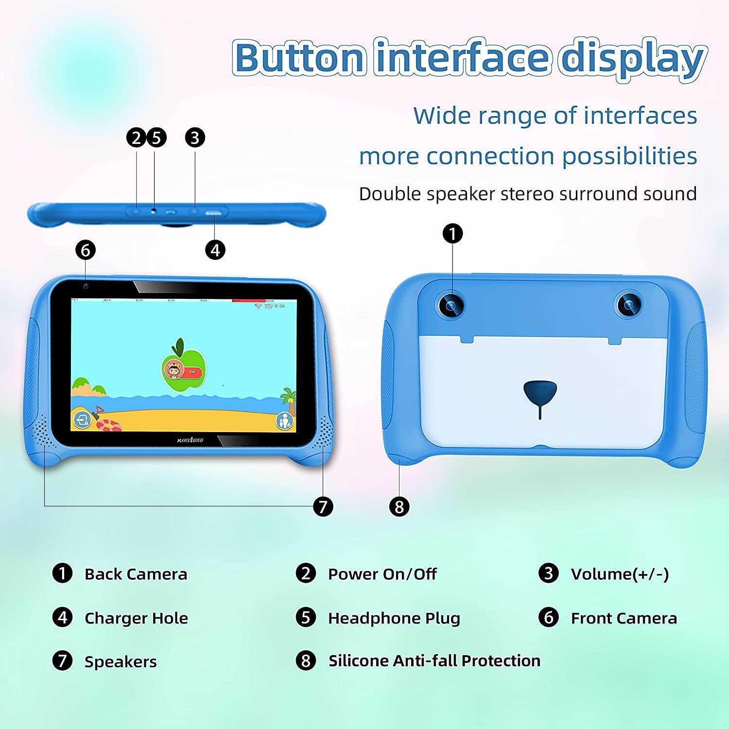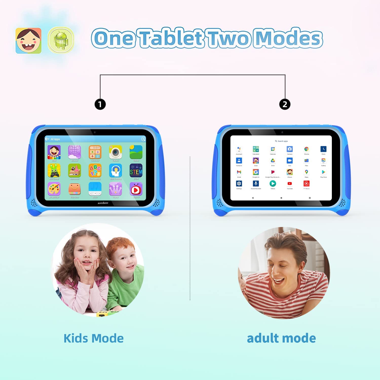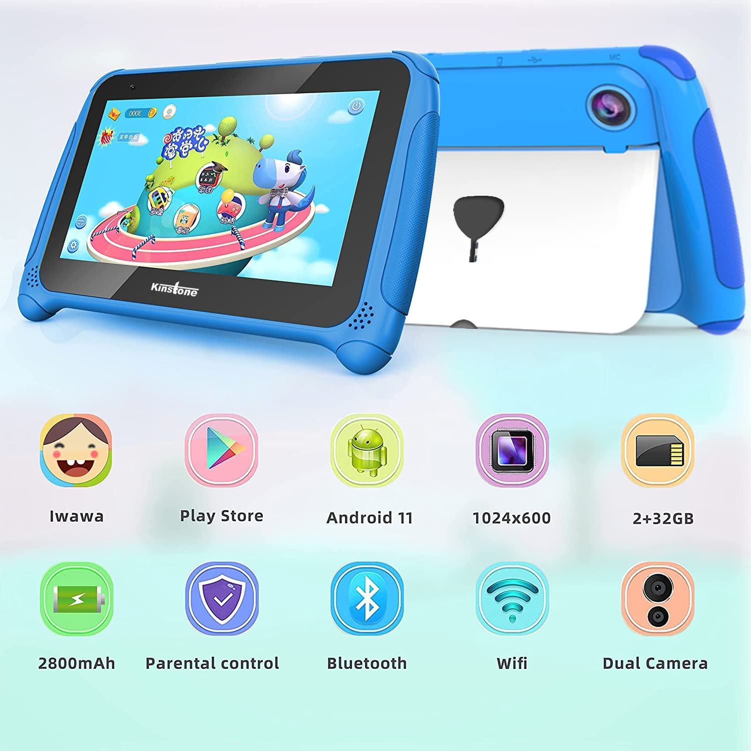 Kinstone 7 inch Kids Tablet with Parental Control,Lovely Android 11 Tablets PC Quad Core 32GB Memory Storage 2GB RAM Dual Camera Google Certified WiFi Bluetooth 4.2 ages3-12(Blue)