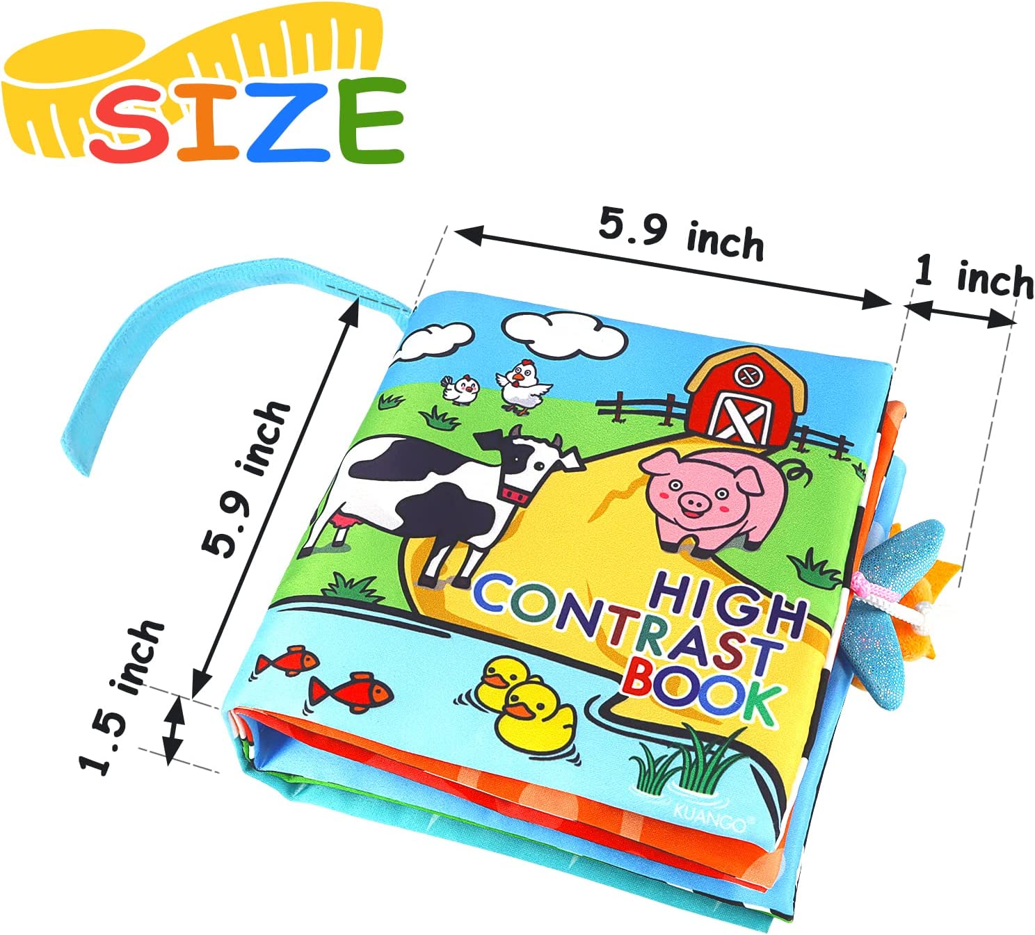 KUANGO Baby Books Toys 0-6 Months, Touch and Feel Cloth Book Non Toxic High Contrast Black and White Crinkle Soft Book Toys for Infants Toddler 1 Year Old Boys & Girls (First Book)