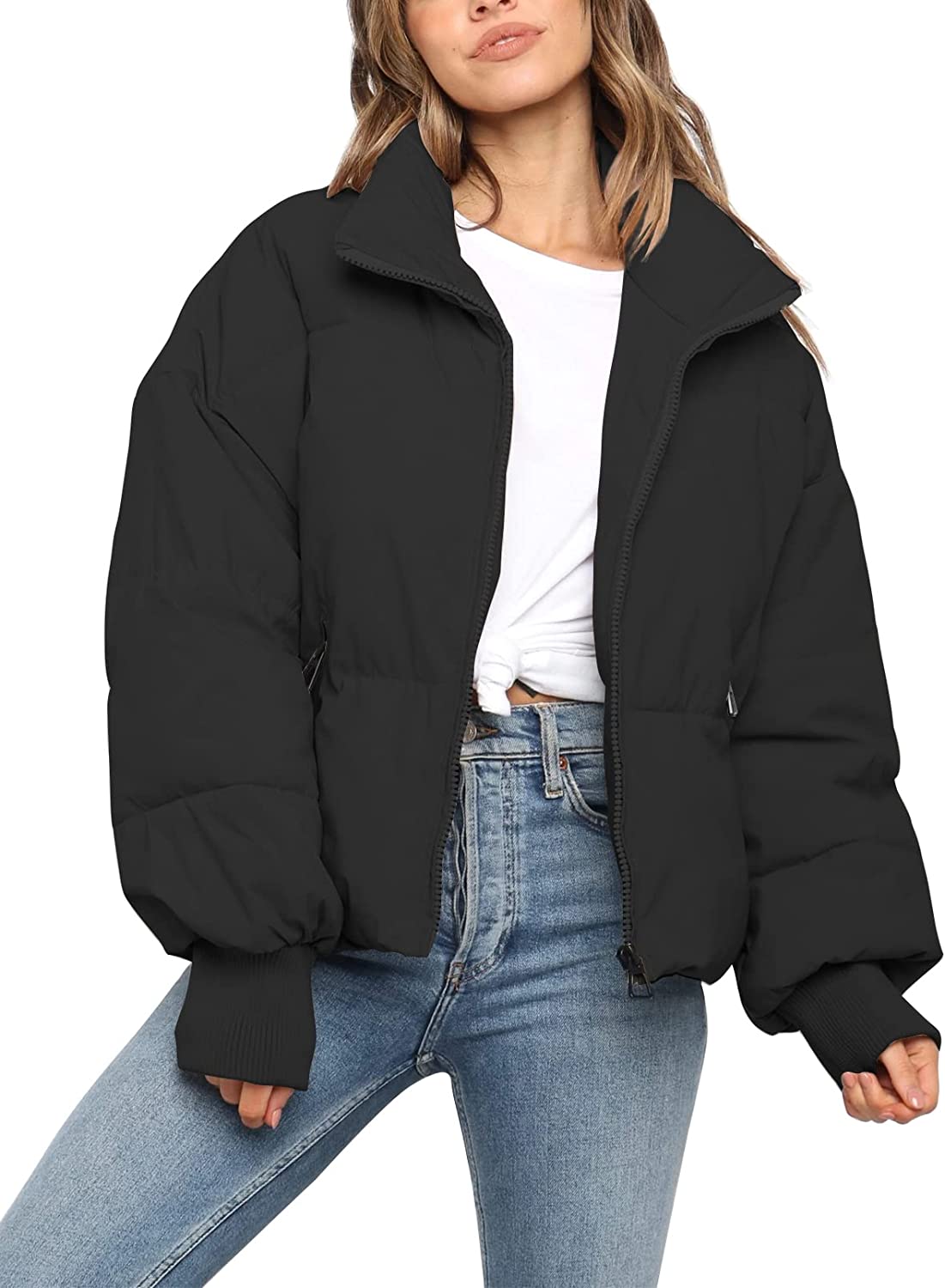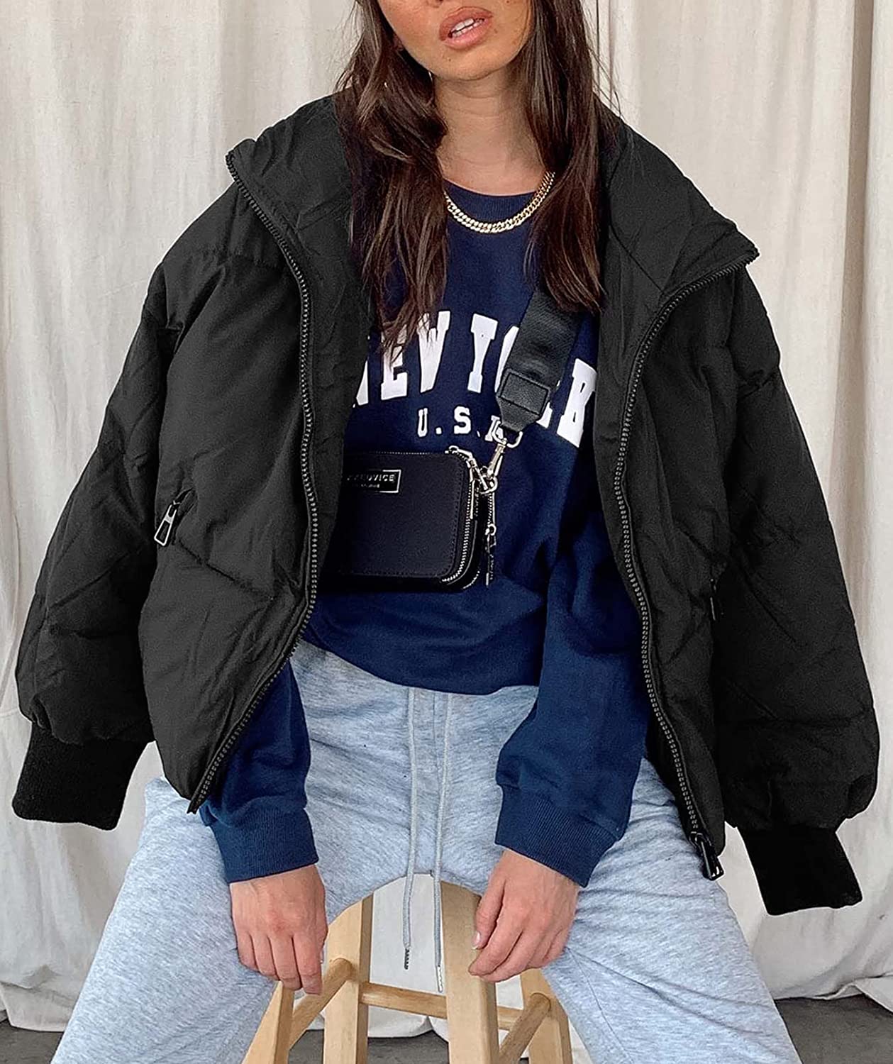 KYL Women's Winter Puffer Jacket Oversized Zip-Up Quilted Puffy Bubble Short Down Coat