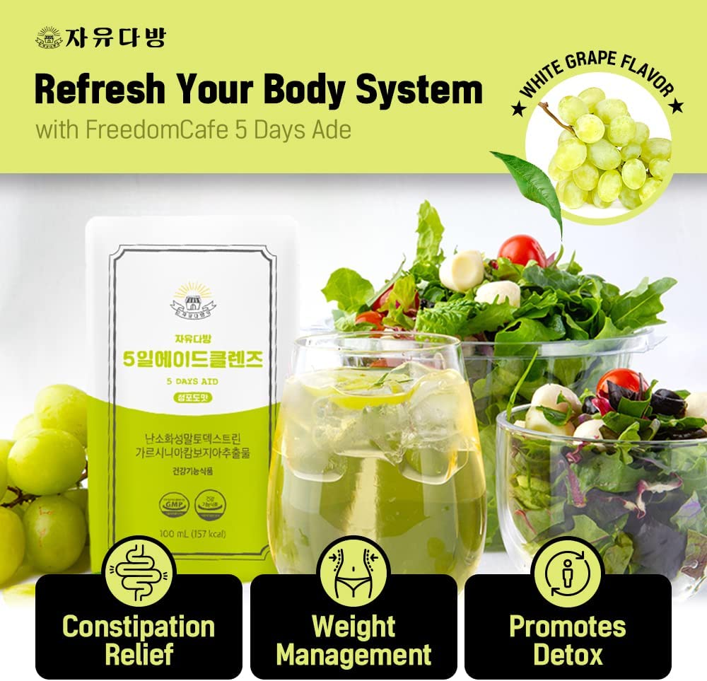 LAB&BEAUTY FreedomCafe 5 Day Detox Cleanse Ade White Grape - 5 Pack (16.90oz) - Supports Healthy Digestive and Regular Bowel Movements - Bowel Cleanse Liquid (White Grape)