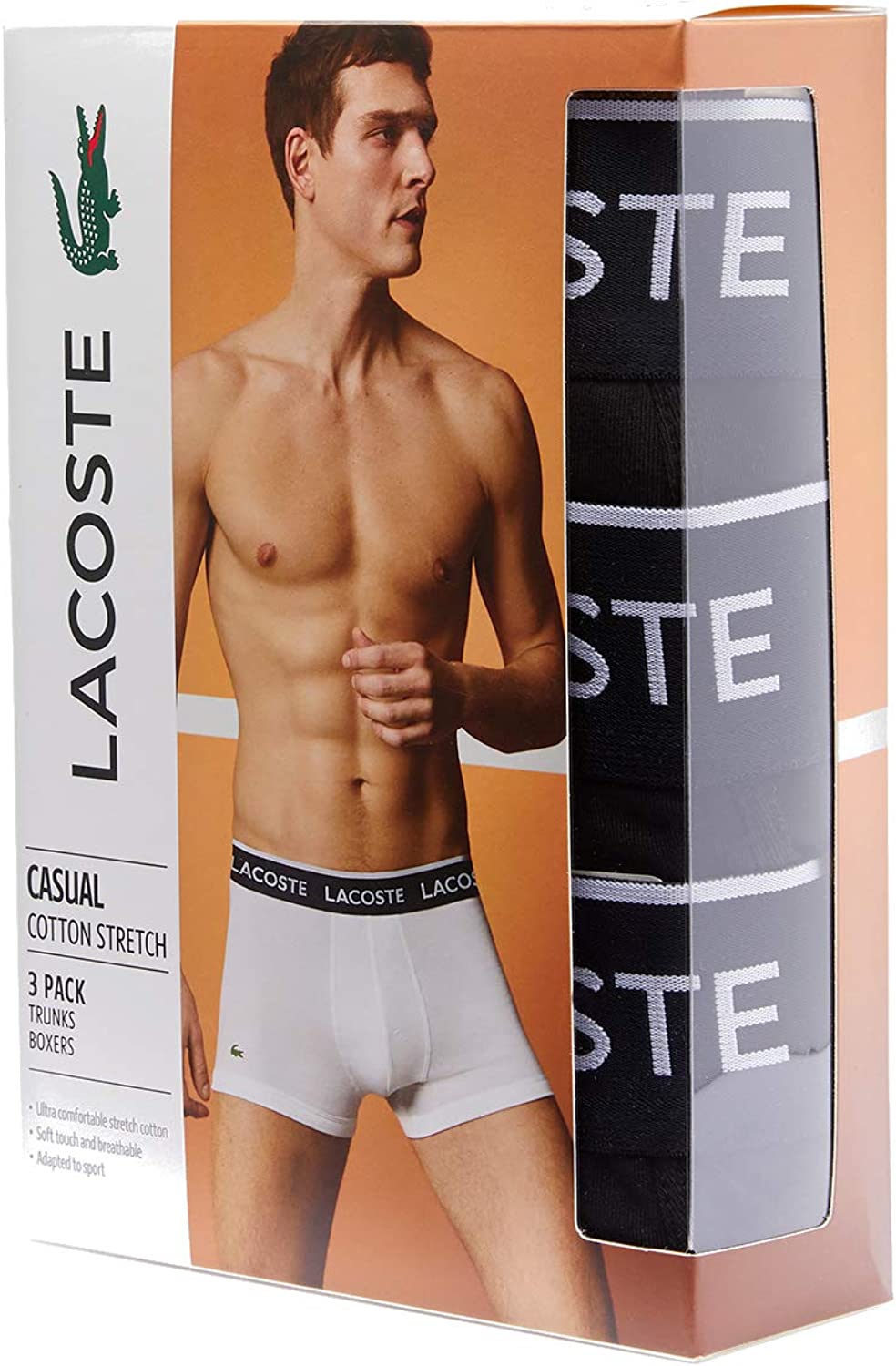Lacoste Men's Casual Classic 3 Pack Cotton Stretch Trunks