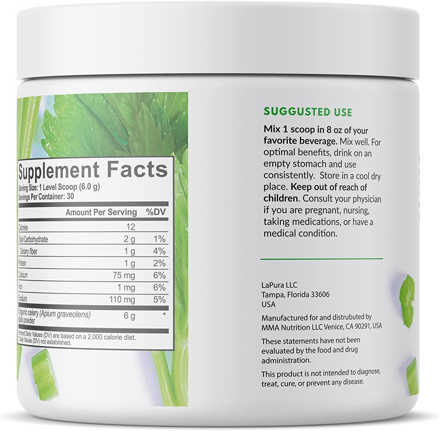 LaPura Organic Celery Powder Detox Cleanse - Fresh Celery Juice Powder to Support Gut Health & Naturally Detox - Cleanse & Detoxify, Antioxidant Just Celery Organic 30 Servings, 6.35 Ounce