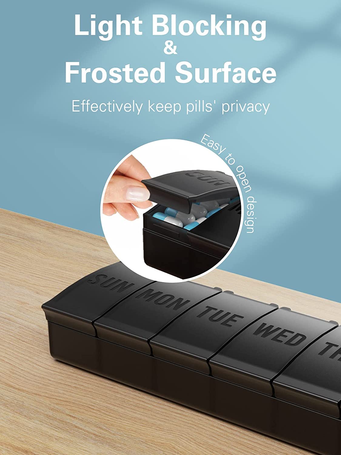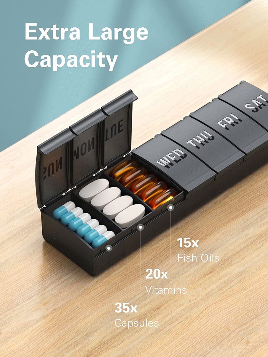 Large Pill Organizer Weekly, Barhon Daily Vitamin Case Box Large Capacity Compartments, 7 Day Pill Containers for Medicine Supplements Fish Oil