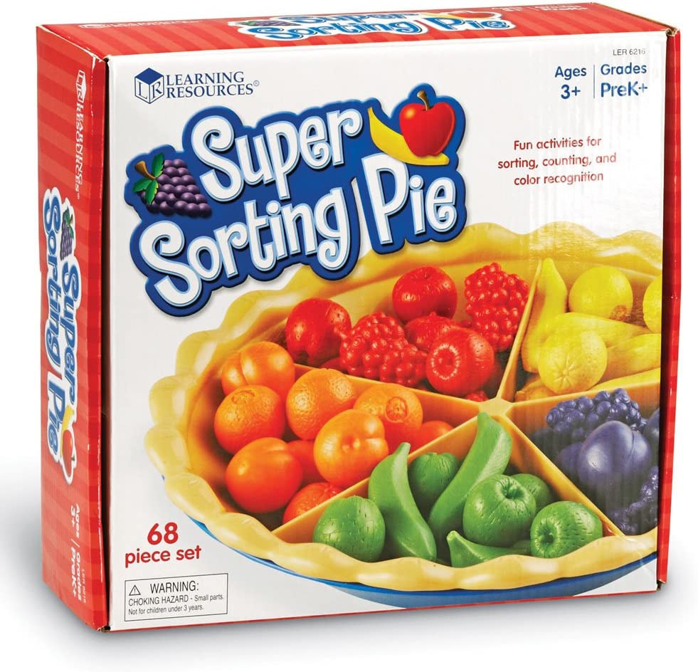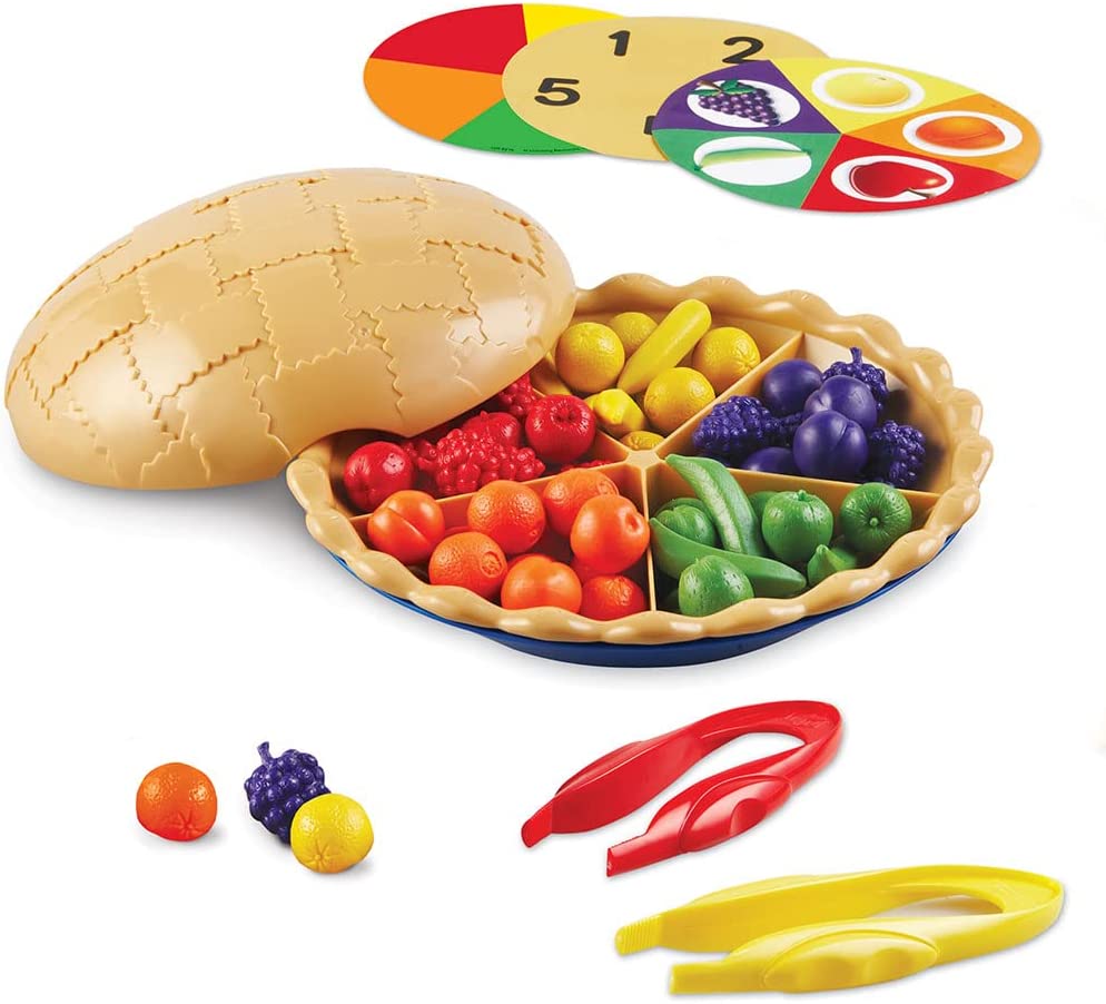 Make learning early number skills, including counting, as easy (and fun) as pie. Sorting cards go on the bottom of the pan to provide visual cues that support success. The top crust becomes a bowl to conveniently hold counters. Jumbo Tweezers reinforce fine motor skills. 68-piece set.