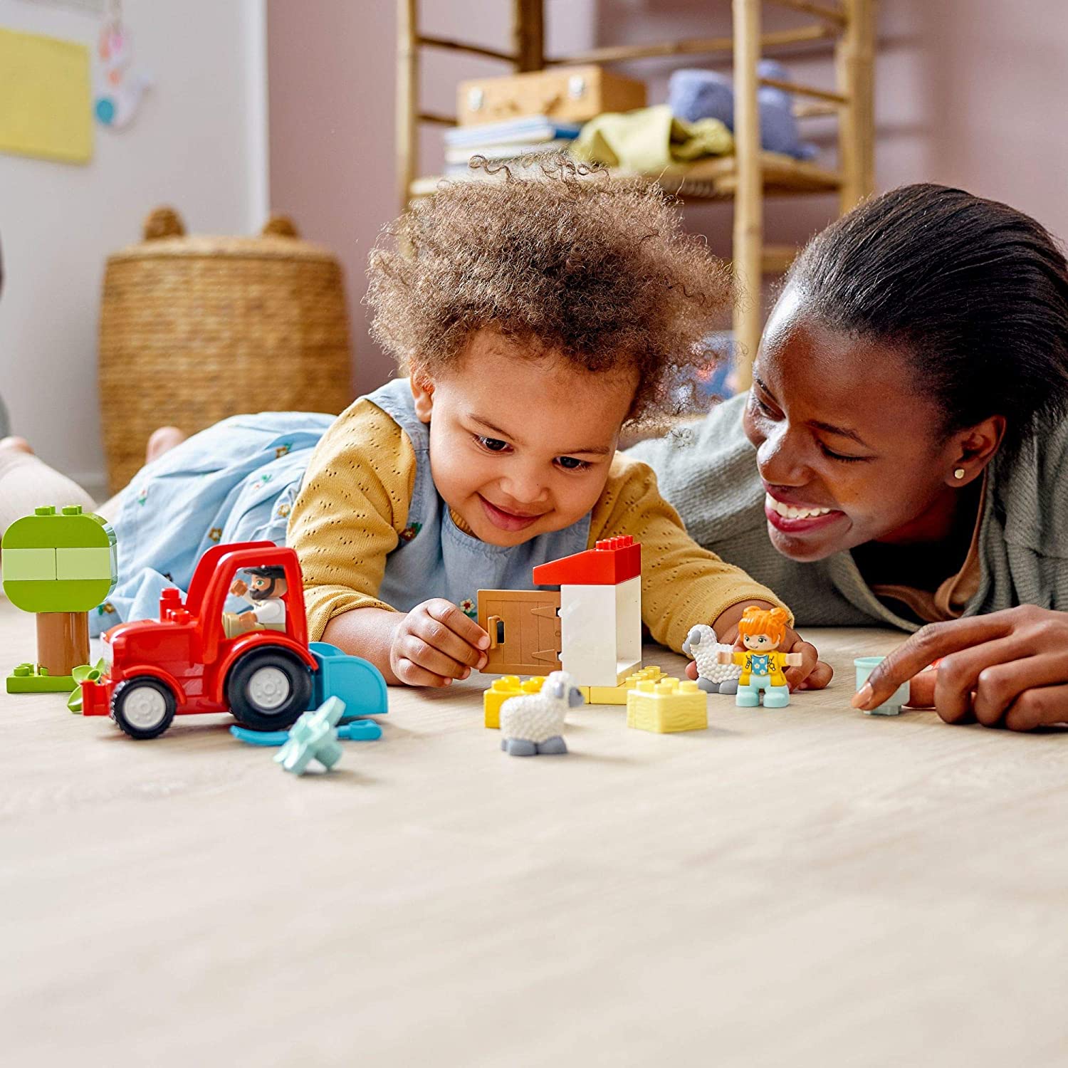 Introduce toddlers to tractor fun, animal care and imaginative play with LEGO DUPLO Town Farm Tractor & Animal Care (10950). This versatile tractor playset inspires endless opportunities for creative fun and developmental play. Parents and preschoolers can enjoy magical moments together helping out at the farm and petting zoo. There’s a tractor pulling a cart full of tools, 2 cute sheep and farmer and child figures. As kids act out animal-care activities, such as transporting food to the sheep and feeding them, they develop fine motor skills and social and emotional awareness. DUPLO toys put open-ended fun, self-expression and joyful learning into preschoolers’ hands. With DUPLO playsets, parents and young children can share precious developmental milestones as they play together.