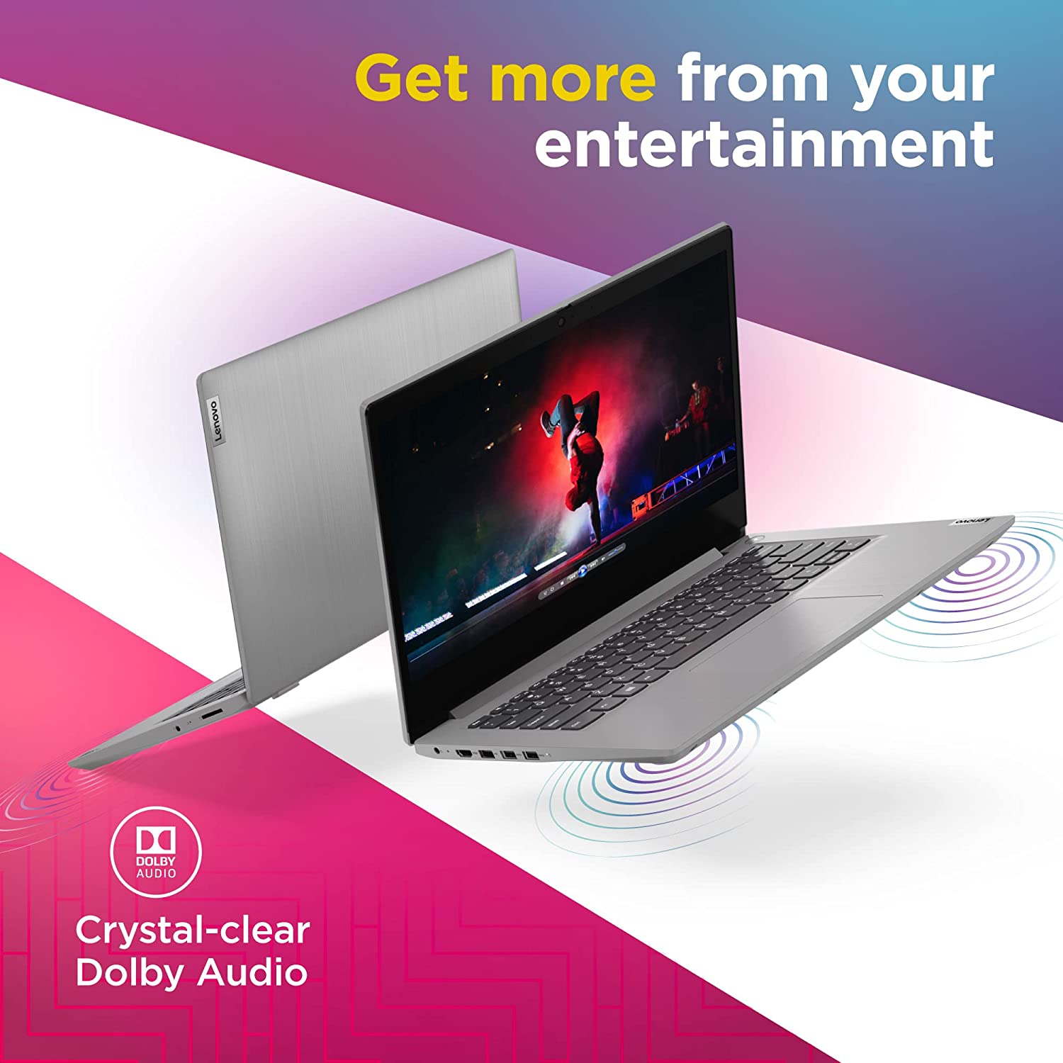 The Lenovo IdeaPad 3 14" laptop is a notebook computer that combines performance with purpose. This lightweight PC pairs an AMD 5000 series processor with lightning-fast responsiveness with tailored learning and work from home solutions that address eye strain, posture problems, and at-home distractions. The 14-inch full HD IPS display offers an anti-glare screen and 4-side narrow bezels, which translate to one of the highest active area ratios of its class. With integrated AMD Radeon™ 7 graphics, you'll enjoy beautifully clear and vibrant images with wider viewing angles and less clutter. Enjoy two 1.5W speakers with Dolby Audio™ plus a 720p camera with dual microphone array for your next video chat or conference call. Plus, the new privacy shutter on the camera lets you reserve complete control over your privacy, so there's no need to worry about malicious actors or accidentally leaving your webcam on.