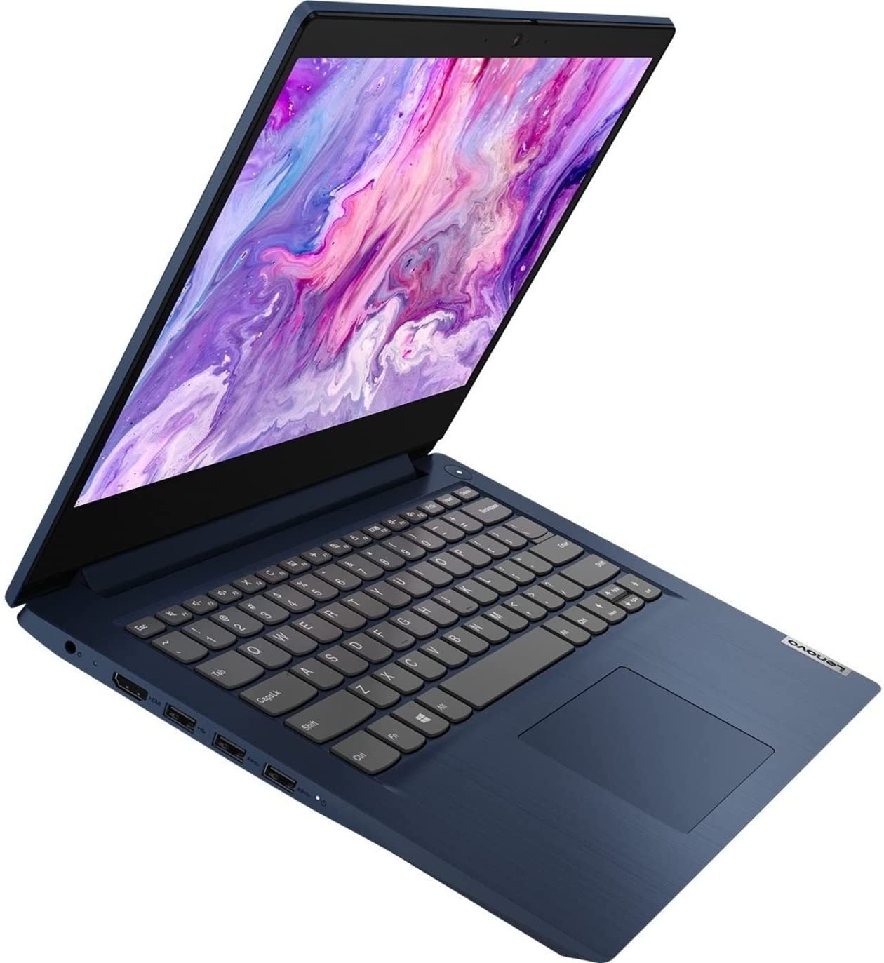 This slim laptop is less than 1 inch thick and weighs only 3.3 lbs, so it's easy to take with you to school, work, or the local coffee shop. And with up to 7.5 hours* of battery life, you'll have plenty of time to finish your work or watch your favorite movie. The integrated webcam lets you video chat with your friends and family, while the physical shutter allows you to close your camera when you want, giving you peace of mind and keeping your privacy intact. Connect with WiFi or Bluetooth®; plug in with three USB ports, HDMI™, and more. The 14-inch IdeaPad 3 is the ideal everyday PC for anyone who needs a light, powerful laptop.