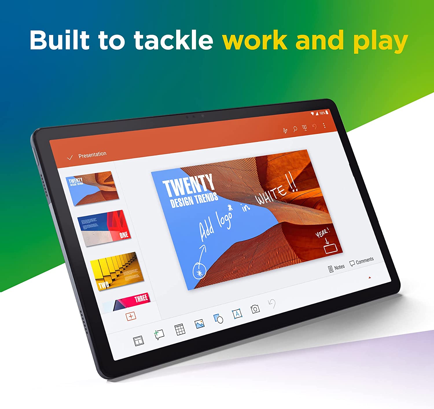 Running the Android™ 11 operating system, the Tab P11 Plus tablet offers Bluetooth® and Wi-Fi wireless connectivity and a USB Type-C™ 2.0 port for data transfer and charging. You can also use the USB-C port to attach a compatible headset. Use the front or rear camera to take photos or enjoy a family video chat – this Android tablet comes with a dual microphone array and quad speakers so you'll experience crisp, clear video and sound. You can even log in quickly and easily with Face Unlock.