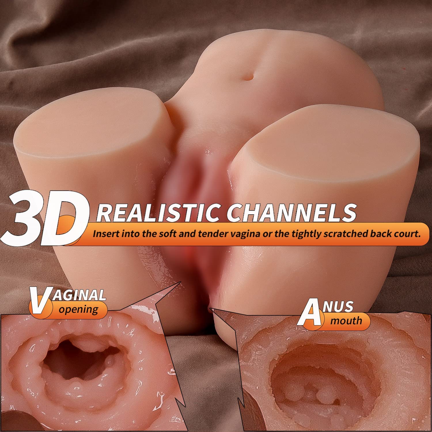 Letitfun 4.6lb Realistic Male Masturbator TPE Sex Toy, Realistic Vagina Anal 3D Buttocks Dual Channel Design, Male Masturbation Sex Doll