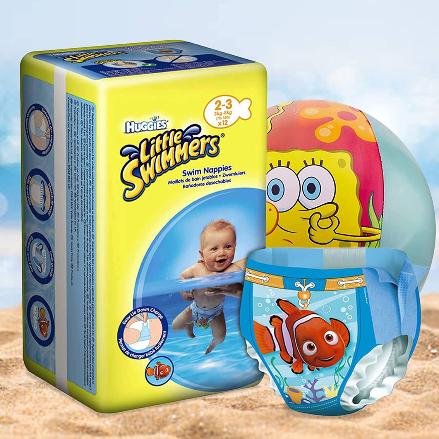 Enjoy worry-free water fun & let your baby make a splash with Little Swimmers! Made with a unique absorbent material that won't swell in water like regular diapers, Little Swimmers give your baby a comfortable fit wet or dry. The #1 best-selling disposable swim pants* designed for water use provide secure protection in the water with Double Leak Guards that fit snugly around baby's legs to help contain messes. Made to fit like swimwear, Little Swimmers feature easy open, reclosable sides for an adjustable fit & quick diaper changes even when wet. Plus a soft, stretchy waistband makes these swim diapers extra comfortable. Each pack features two Disney·Pixar Finding Nemo designs your child will love. Perfect for the pool, beach, splash park & more!