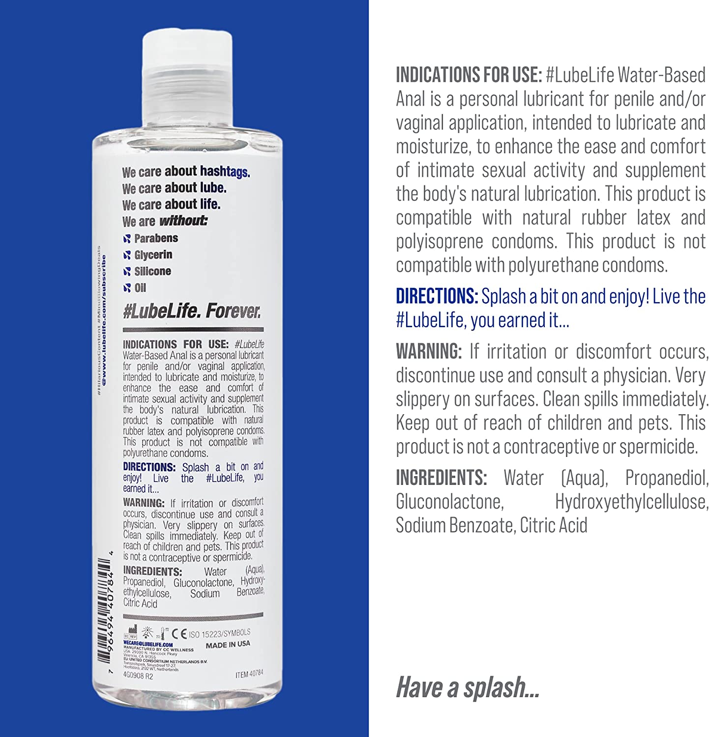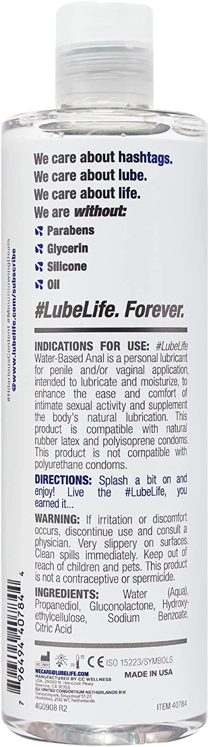LubeLife Water Based Anal Lubricant for Men and Women, 12 Ounce