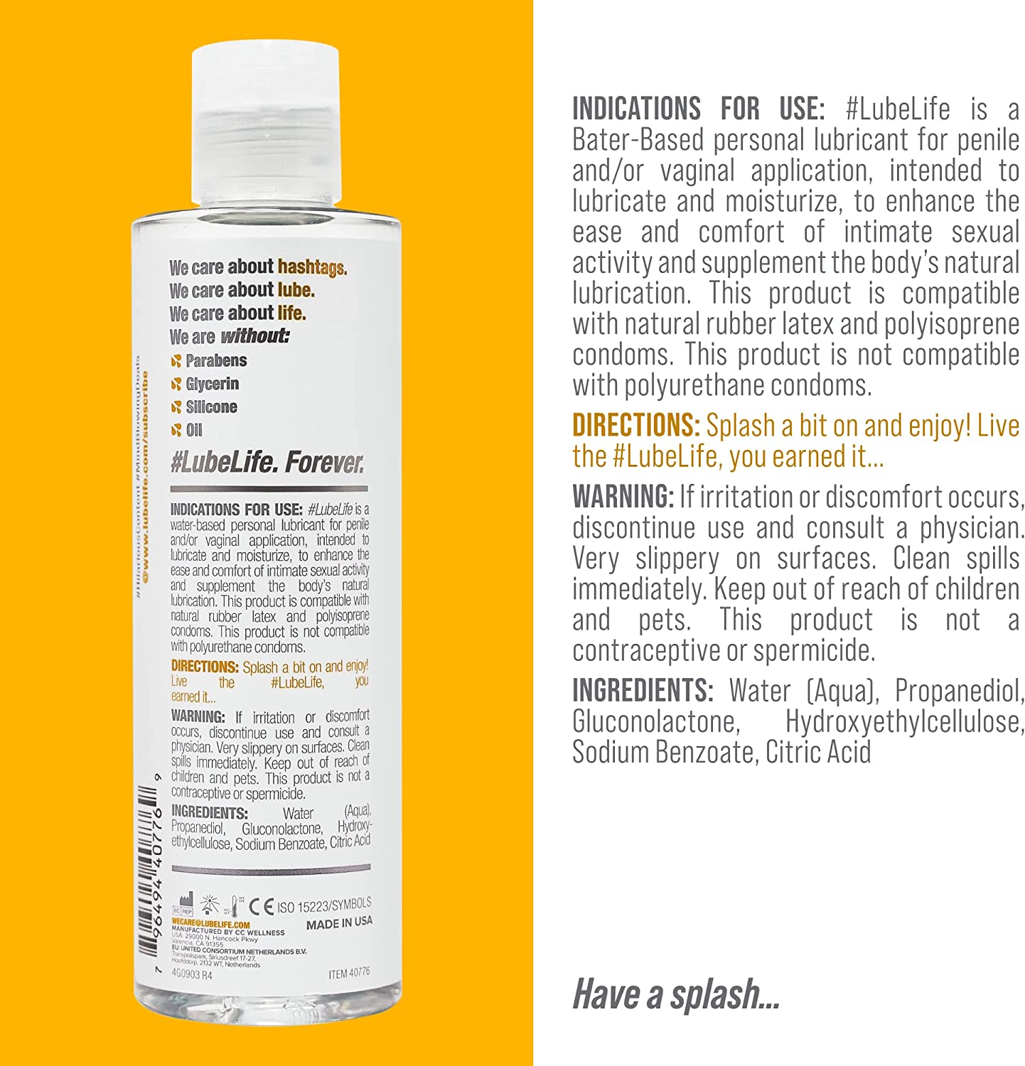 #LubeLife Water-Based Personal Lubricant, Lube for Men, Women and Couples, Non-Staining, 8 Fl Oz