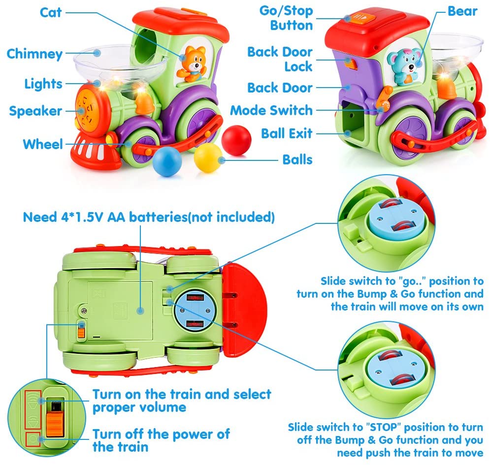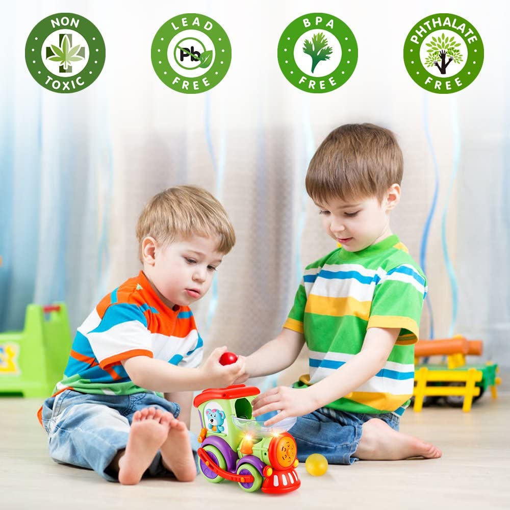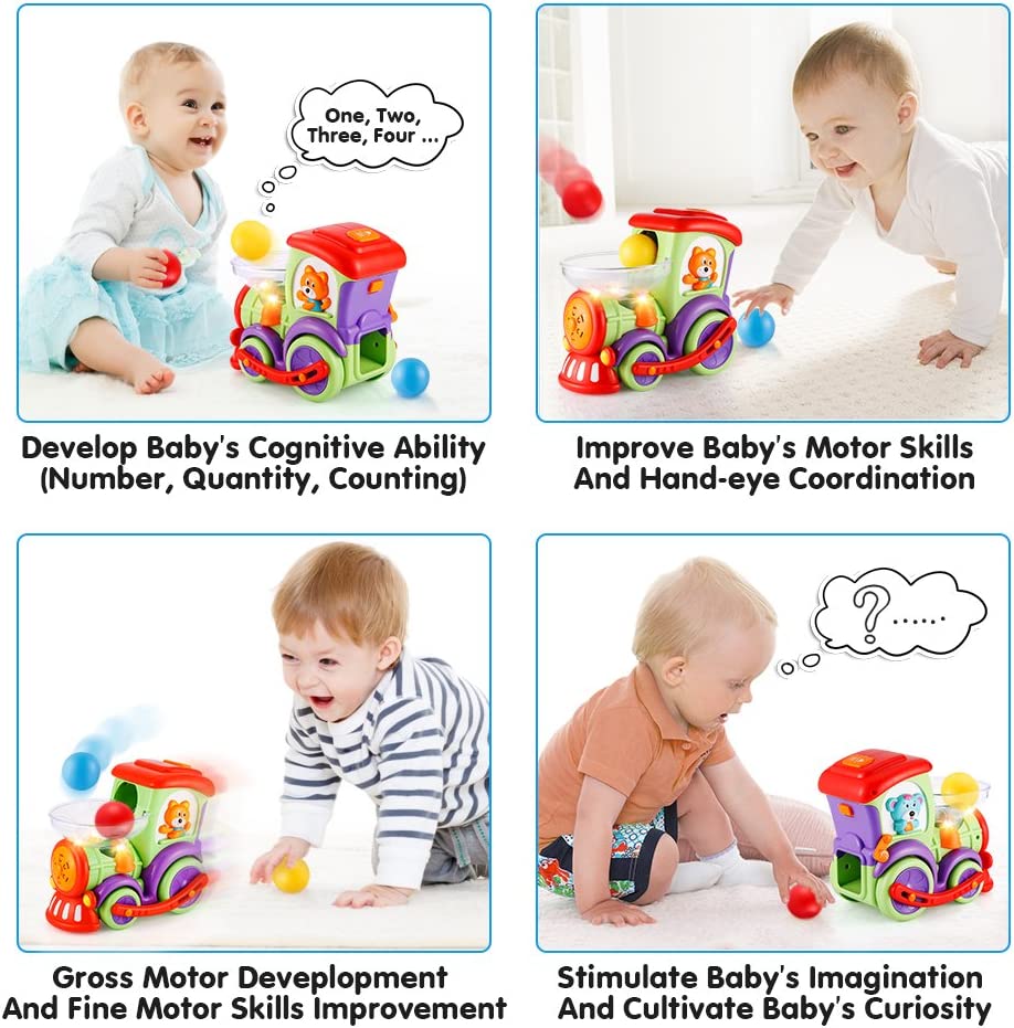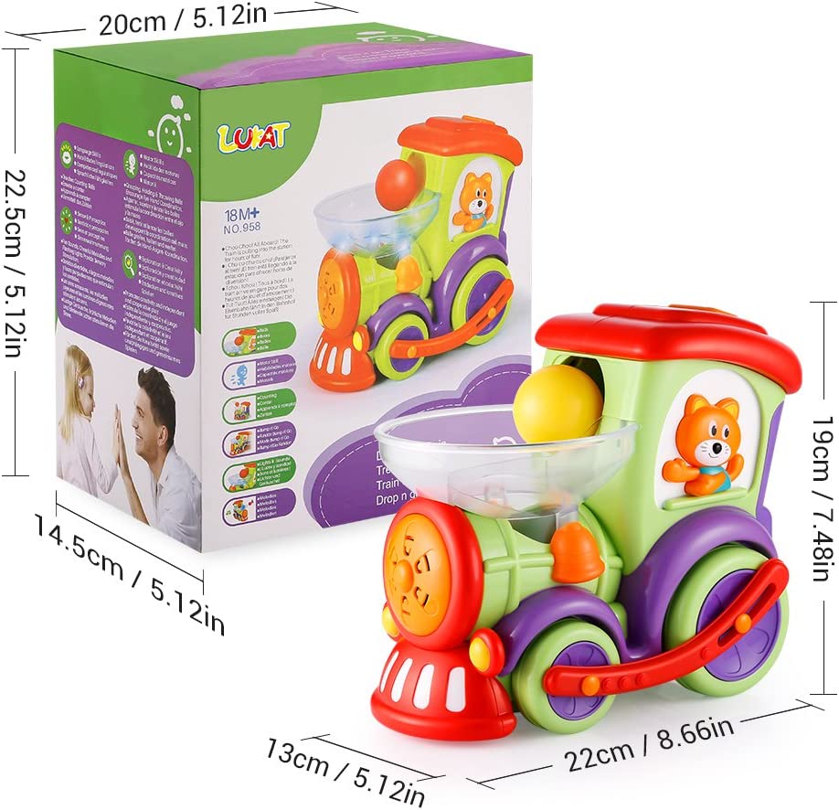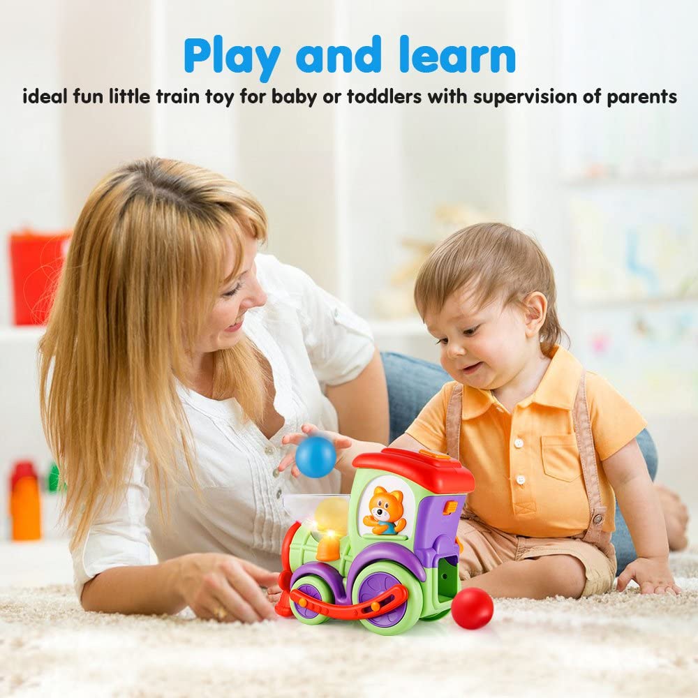 LUKAT Toddler Educational Drop and Go Toy Train with 3 Popper Ball, Music and Light Baby Toys for Preschool Learning, Developmental Toys for 1 2 3 Year Olds