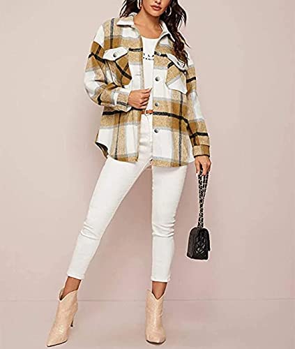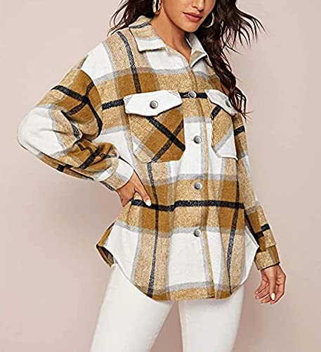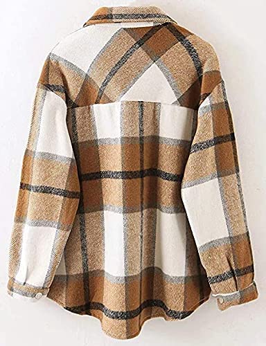 Lviefent Womens Casual Wool Blend Plaid Flannel Shackets Jacket Button Down Shirt Coat