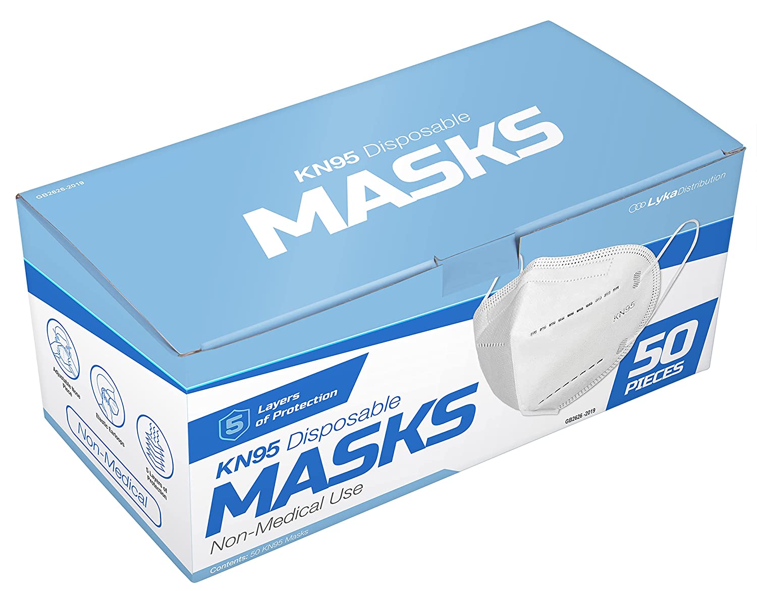 Lyka Distribution KN95 Face Masks - 50 Pack - 5 Layer Protection Breathable KN95 Face Mask - Filtration>95% with Comfortable Elastic Ear Loop | Non-Woven Polypropylene Fabric