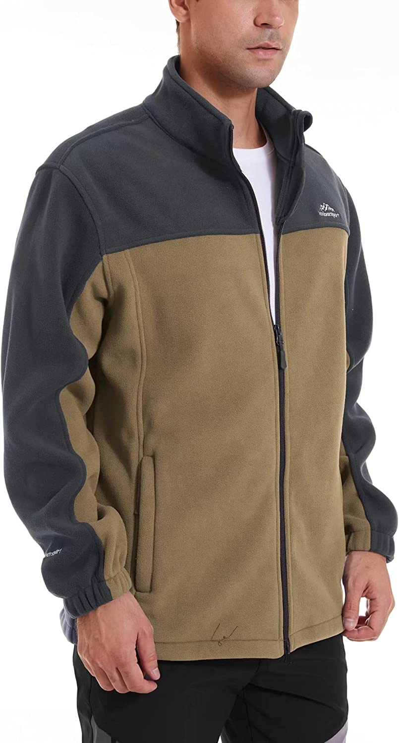 MAGCOMSEN Men's Fleece Jacket Full Zip Stand Collar Windproof Windbreaker Fall Winter Jacket with Pockets