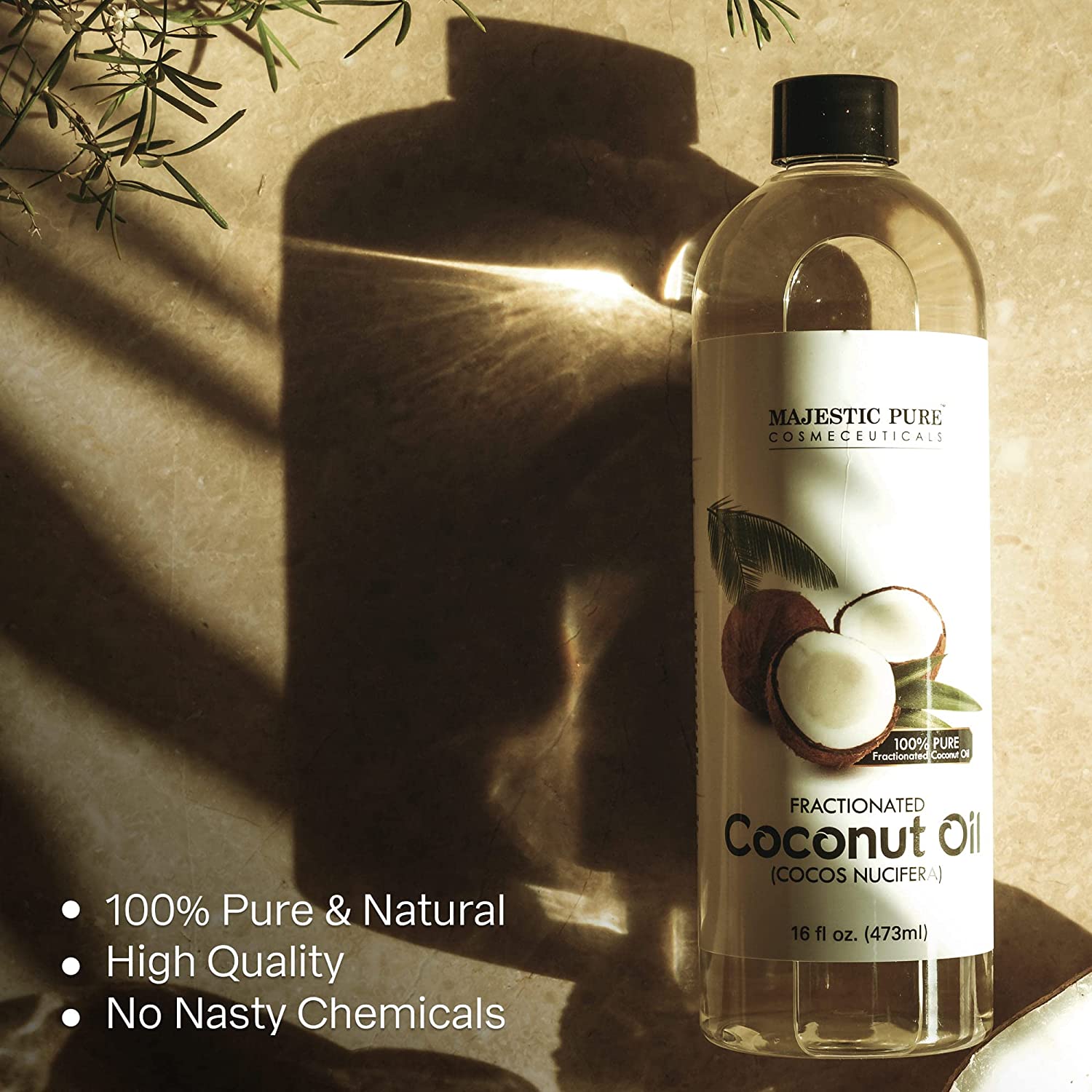 MAJESTIC PURE Fractionated Coconut Oil - Relaxing Massage Oil, Liquid Carrier Oil for Diluting Essential Oils - Skin, Lip, Body & Hair Oil Moisturizer & Softener - 16 fl oz