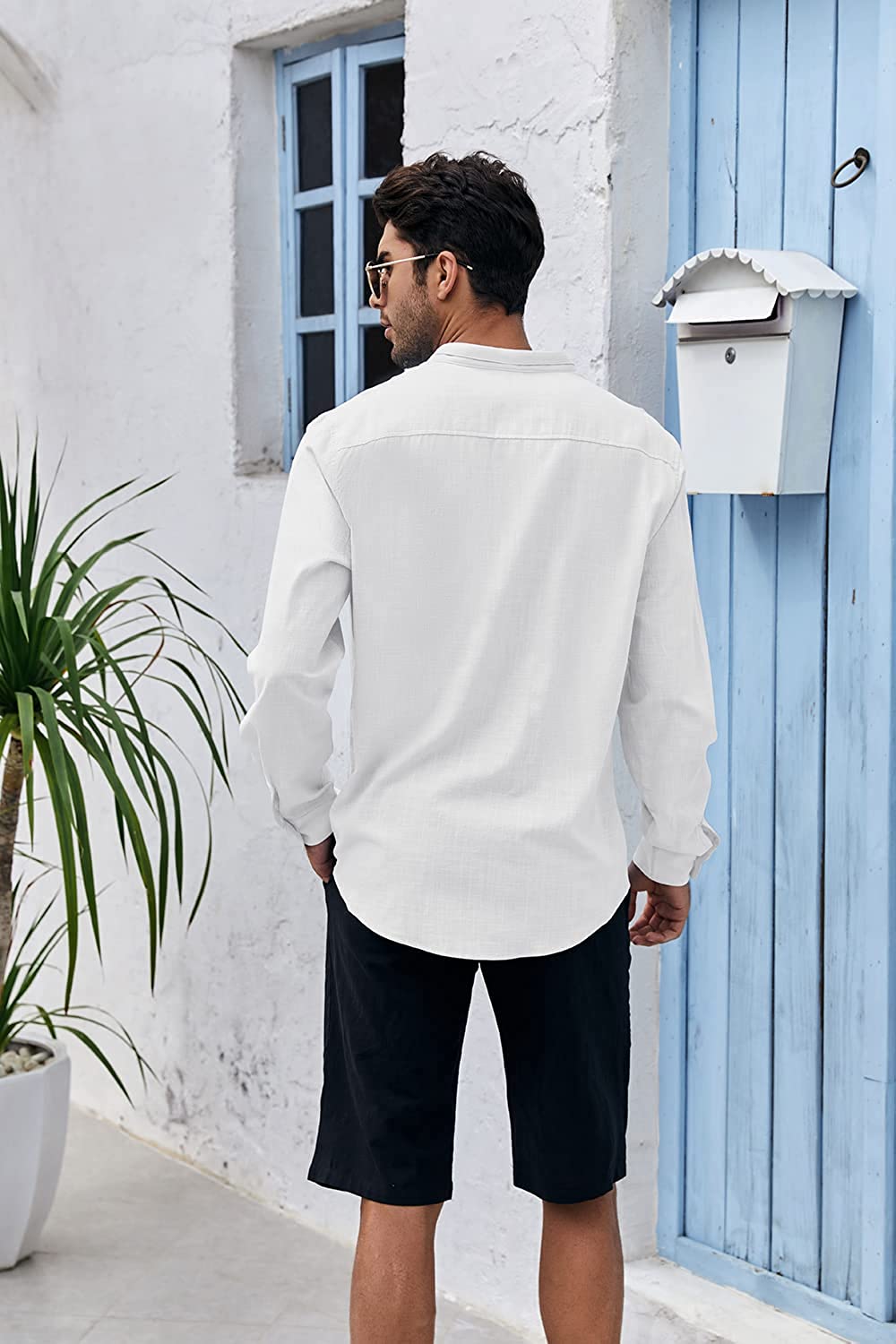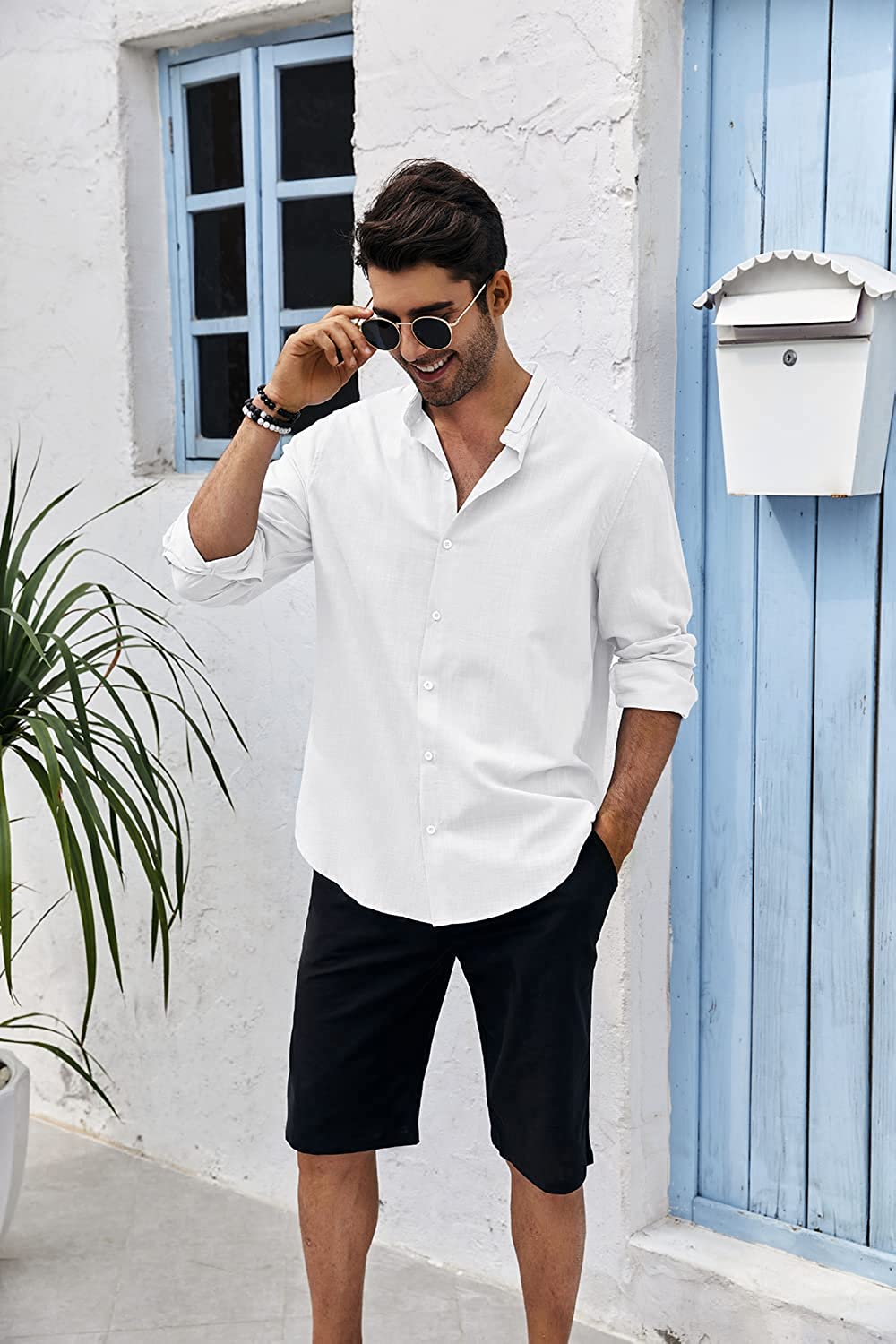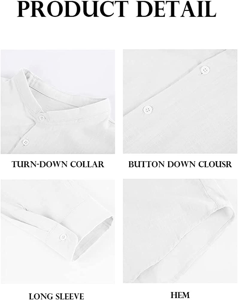 Makkrom Mens Long Sleeve Shirts Linen Button Down Beach Yoga Casual Summer Shirts