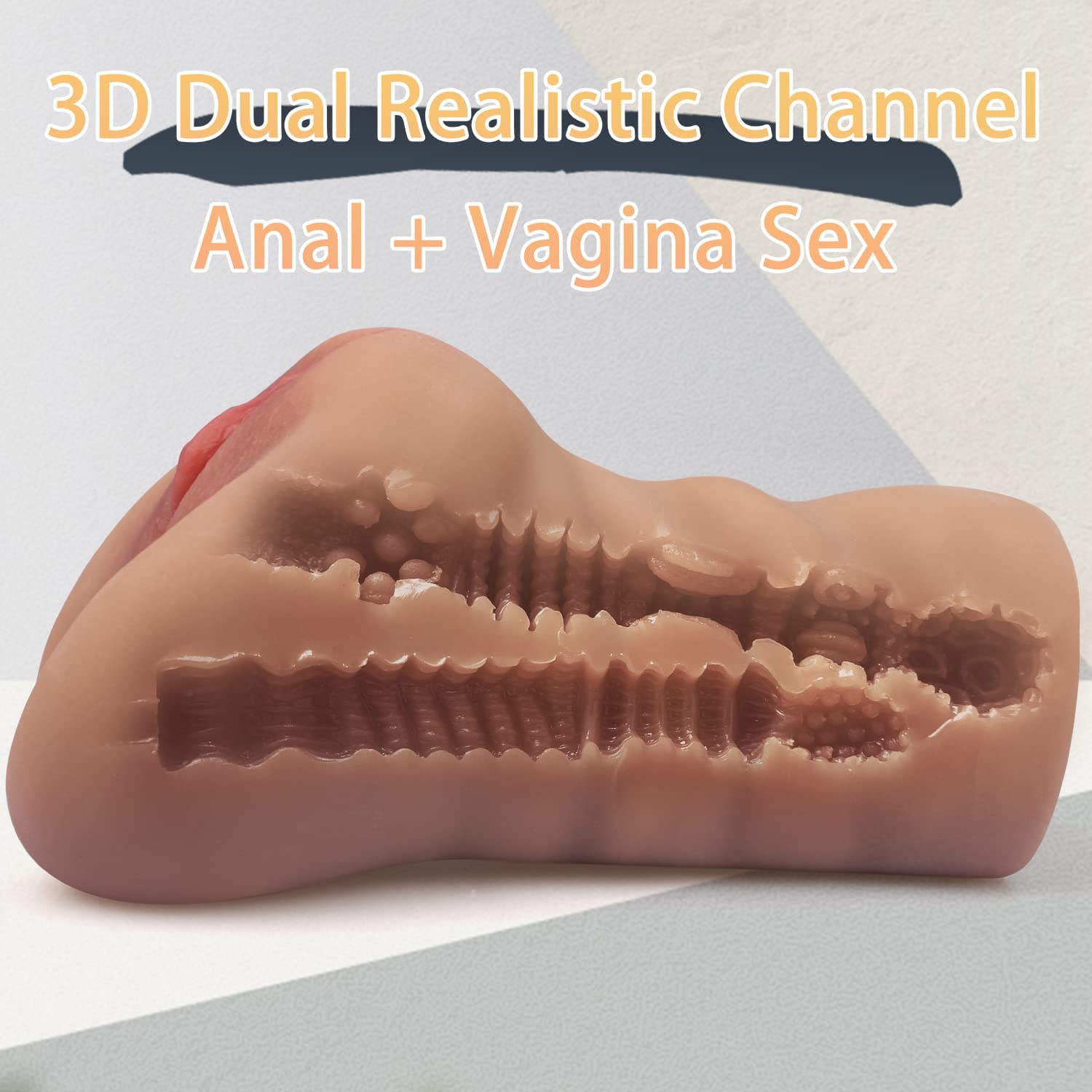 Male Masturbator 650G Lifelike Pocket Pussy Portable Men Stroker Clitoris Anal Sex Toy Masturbators Two Separate Realistic 3D Channel Textured Vagina Tight Anus Adult Toy for Men Masturbation (Flesh)