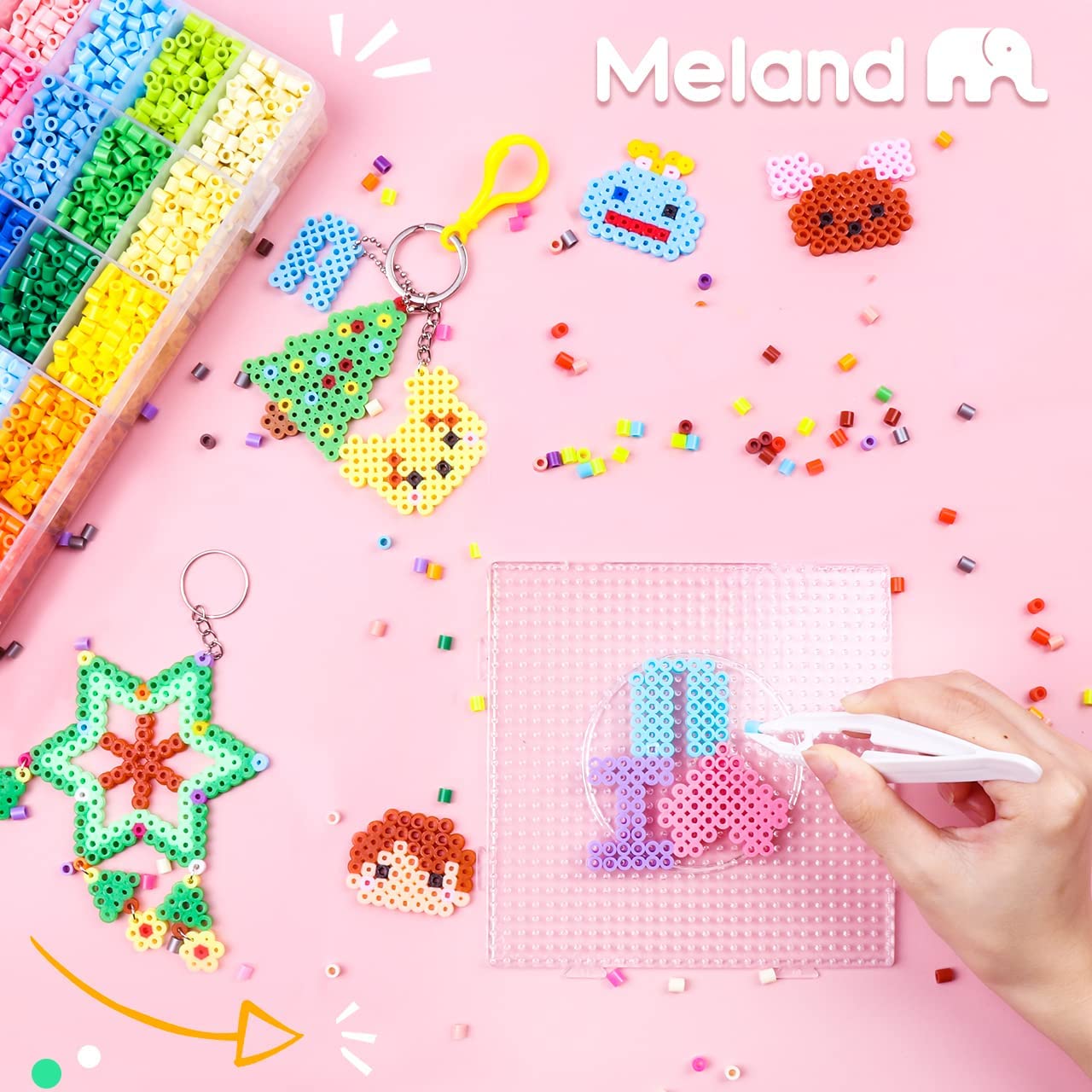 Meland Fuse Beads Kit - 11,000 pcs 36 Colors Fuse Beads Craft Set for Kids- 5MM Fuse Beads Set Including 5 Pegboards, Ironing Paper & Chain Accessories Iron Beads Christmas Birthday Gift