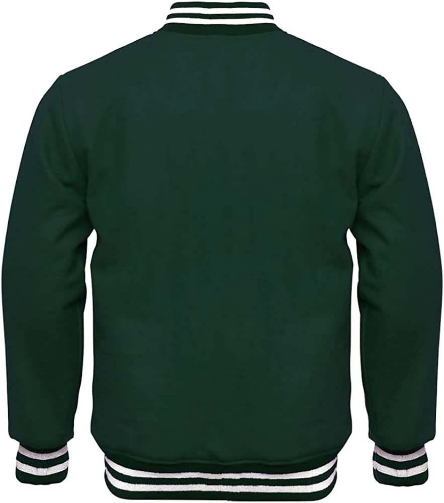 Men's All Wool Bomber Style Letterman Baseball Knit Rib Varsity Jacket