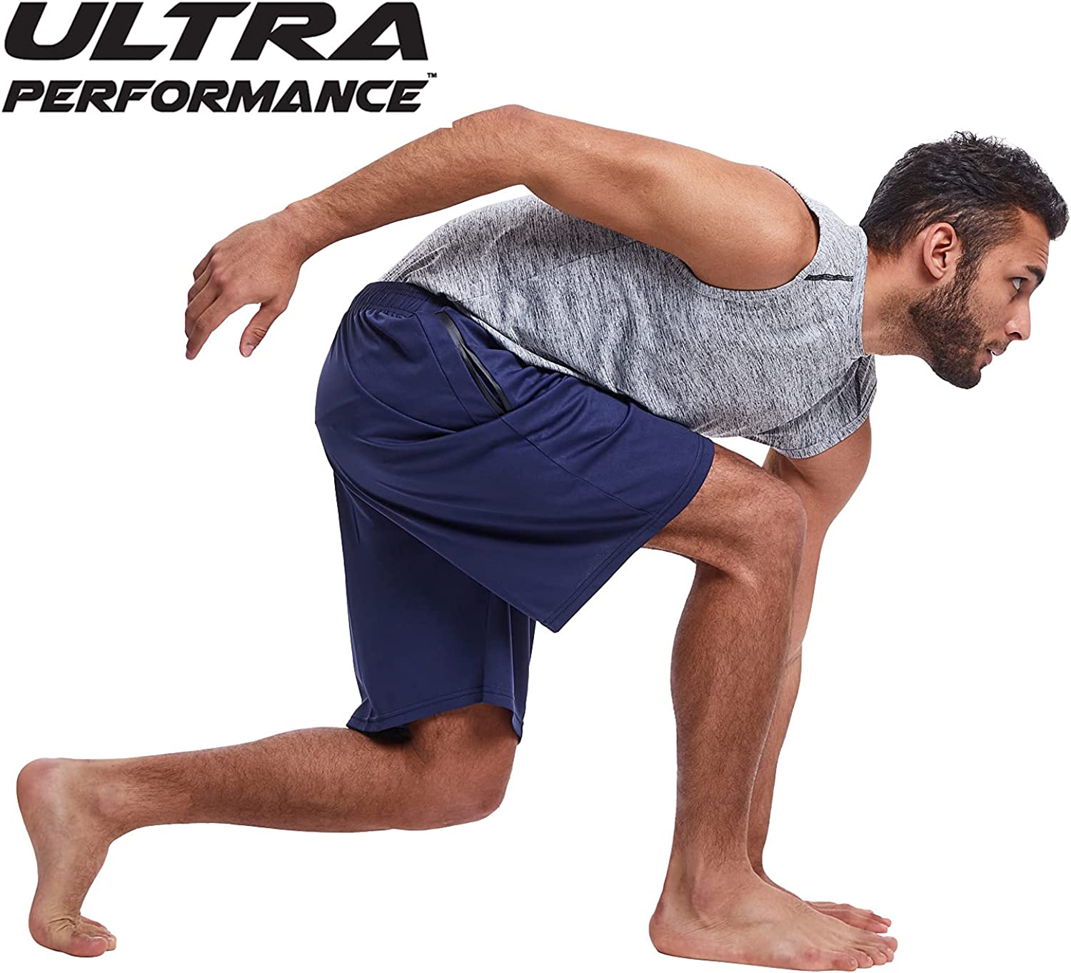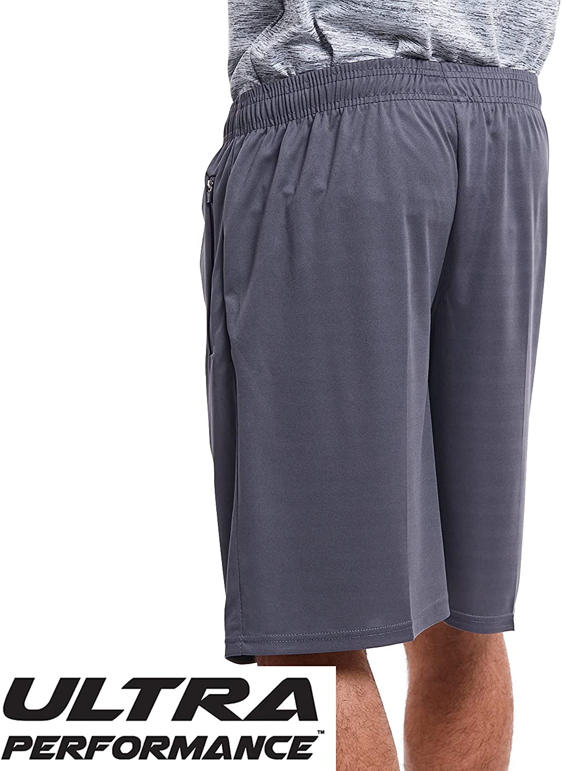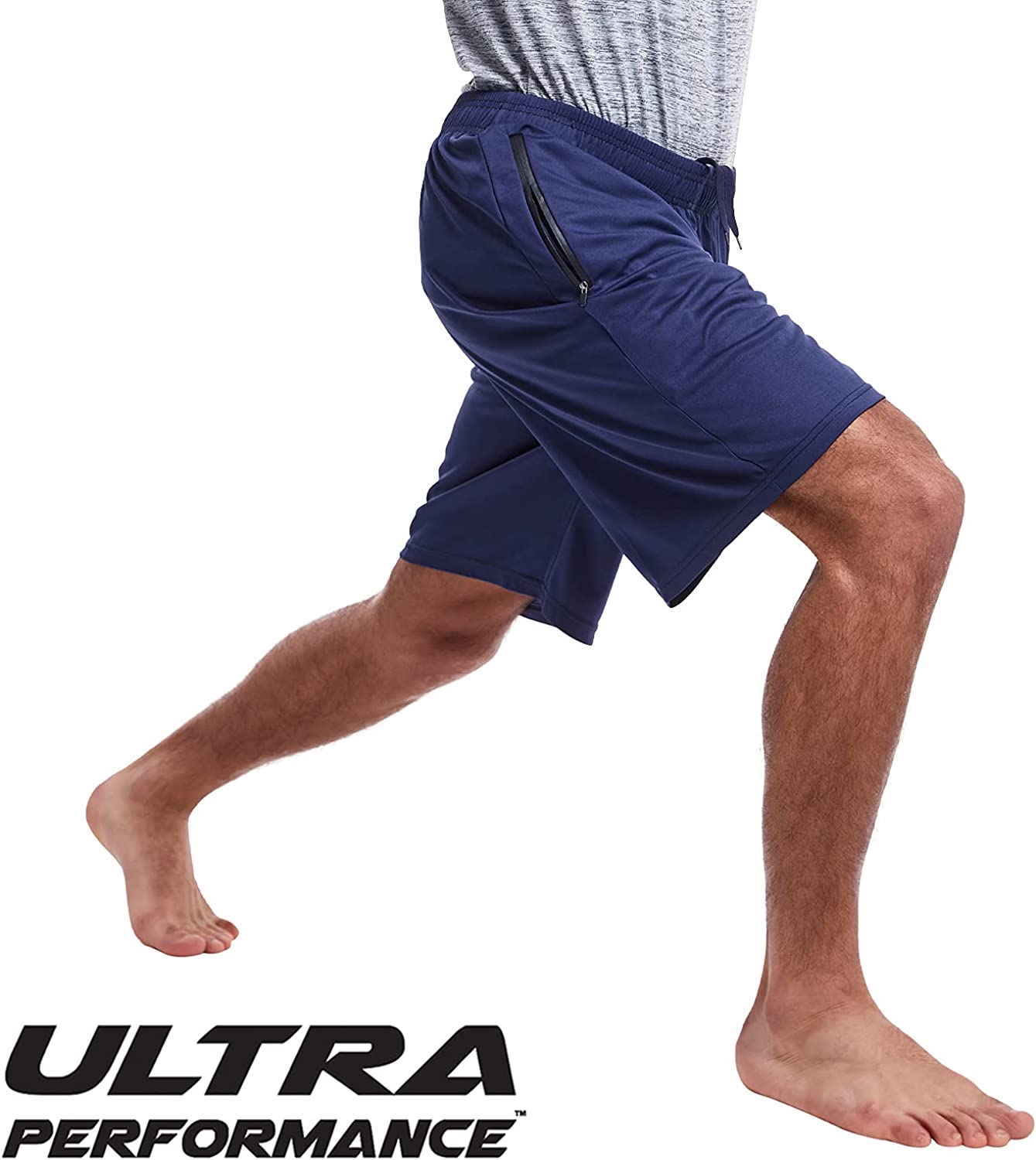Mens Athletic Running Shorts Dry Fit Active Shorts with Zippered Pockets 5 Pack