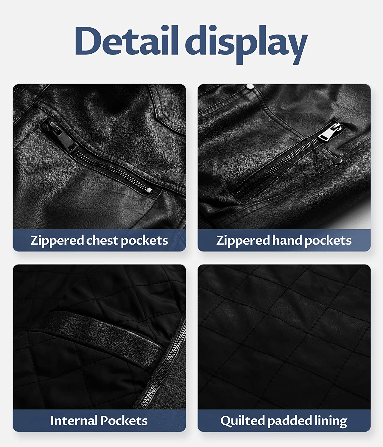 Men's Faux Leather Jacket Motorcycle Jacket Waterproof Windproof PU Moto Outerwear Vintage Bomber Hoodie with Removable Hood