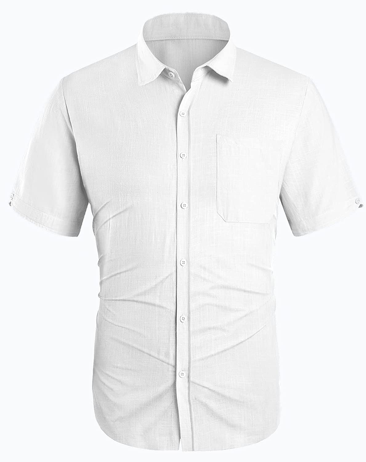 Mens Short Sleeve Shirts Button Down Tops Beach Linen Fishing Tees Spread Collar Plain Summer Blouses