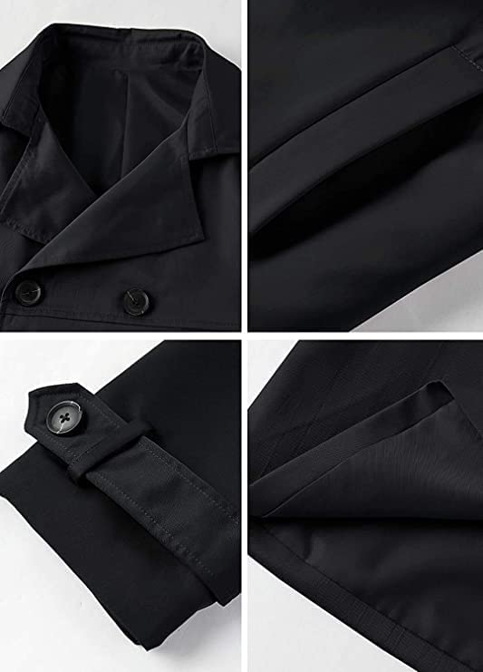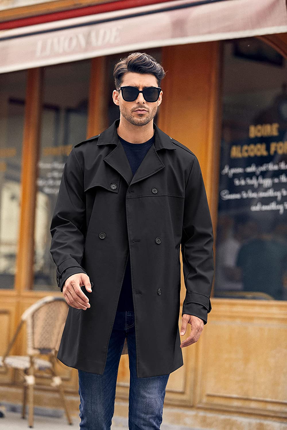 Men's Trench Coat Slim fit Double Breasted Belted Windbreaker Lapel Long Jacket Casual Windproof Overcoat