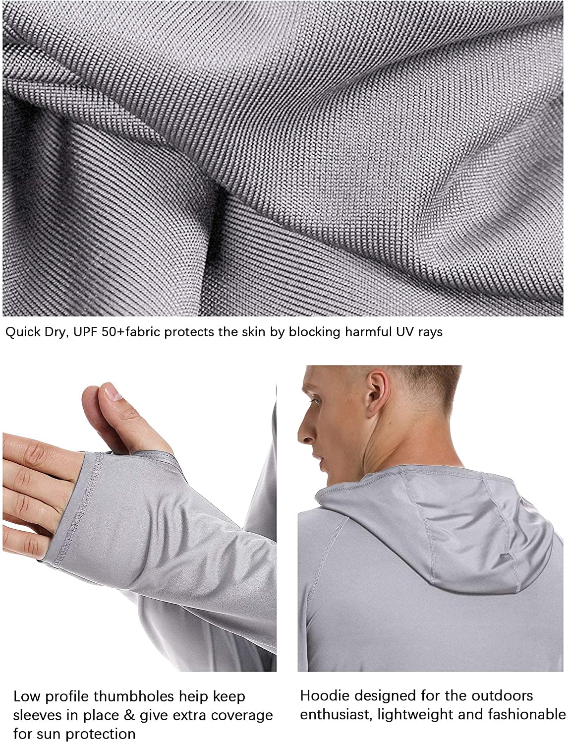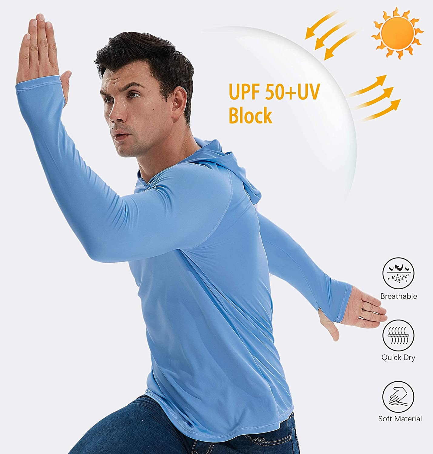 Men's UPF 50+ Sun Protection Lightweight Hoodie Performance Long Sleeve SPF UV Shirt For Fishing Running Hiking