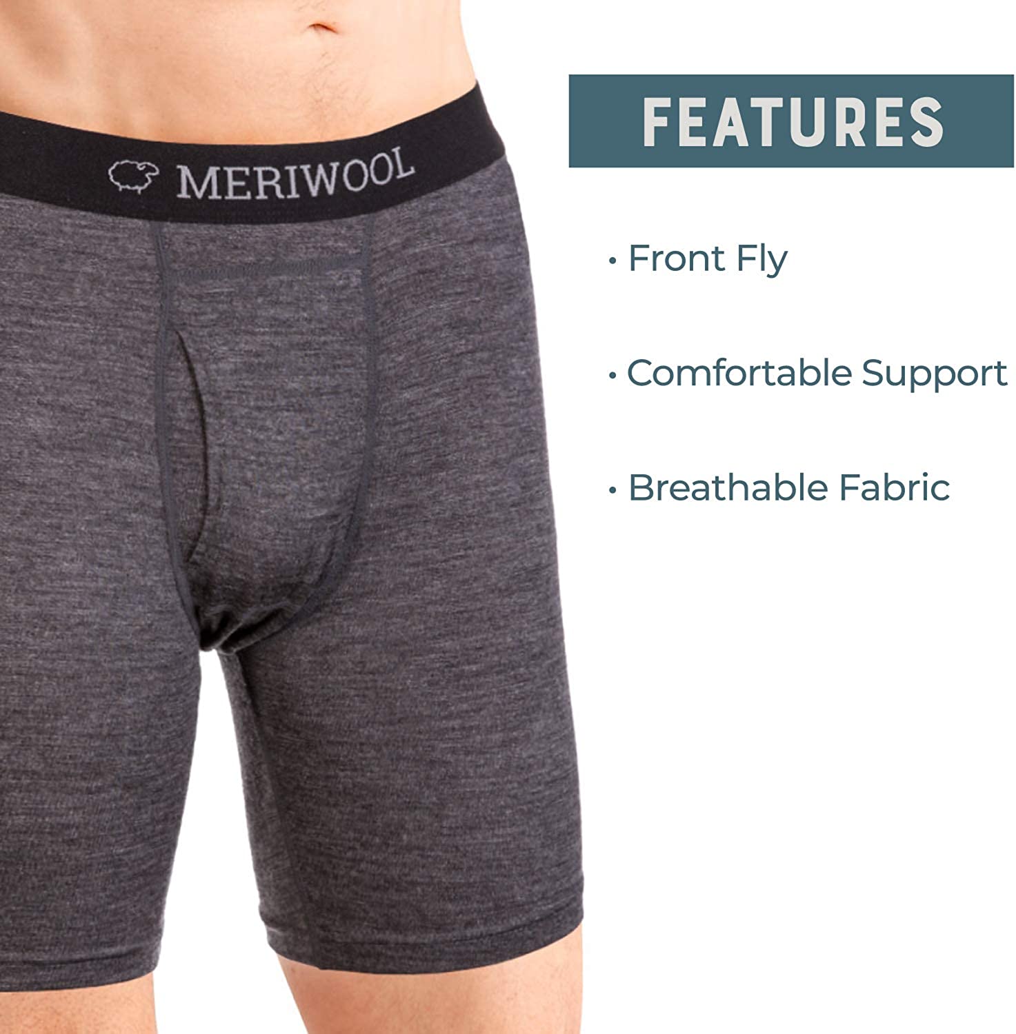 MERIWOOL Mens Boxer Briefs Merino Wool Underwear Base Layer for Men