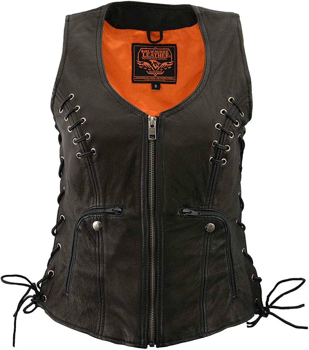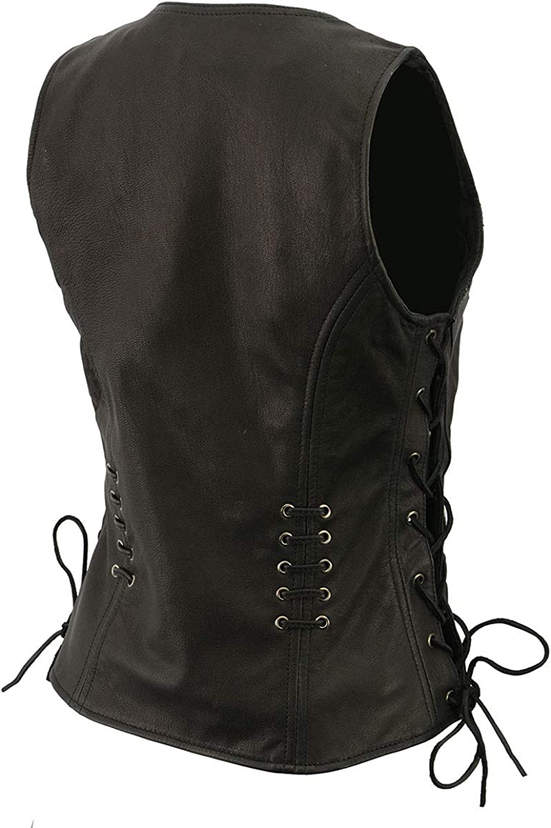 Milwaukee Leather MLL4575 Women's Black Leather Vest with Side Laces